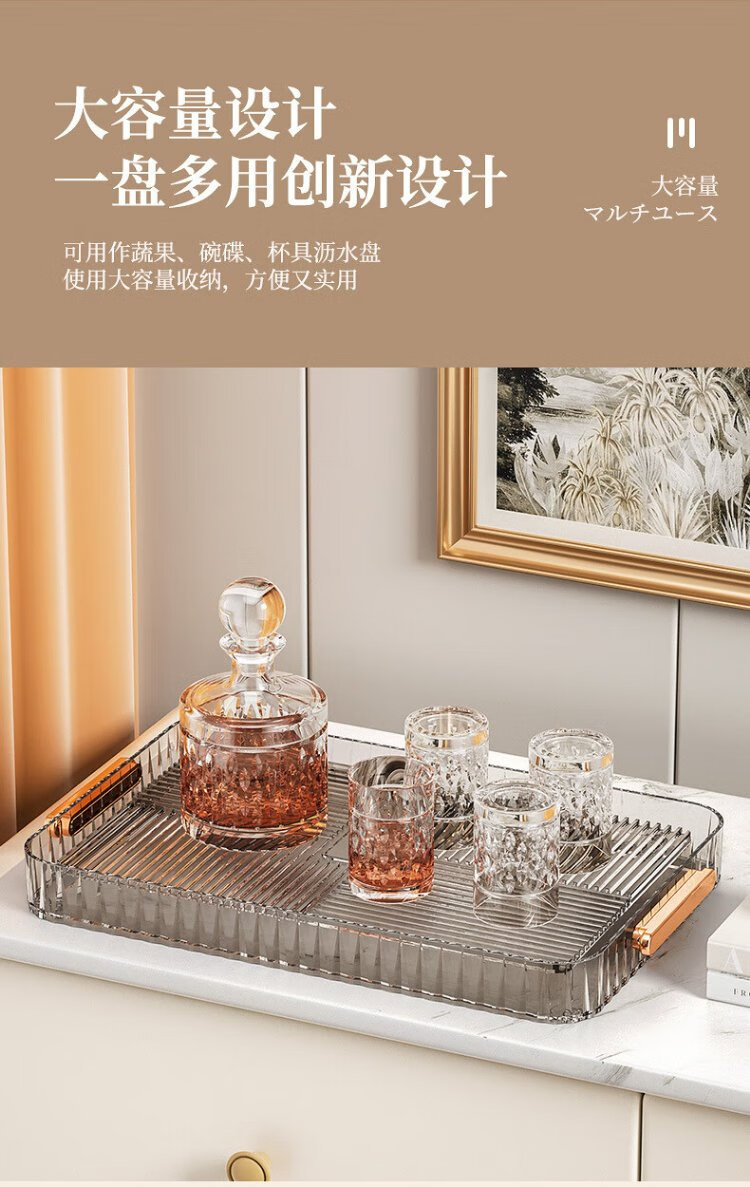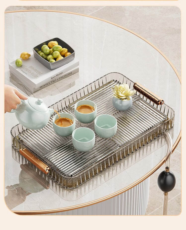 Yu Boyan water cup drain tray tea tray holds tea cup artifact food tray water cup holder living room storage tray with drainage drain tea tray large丨gray
