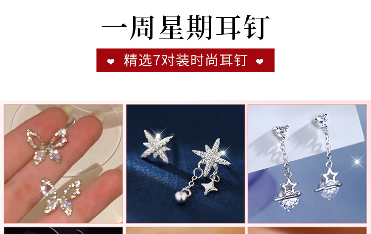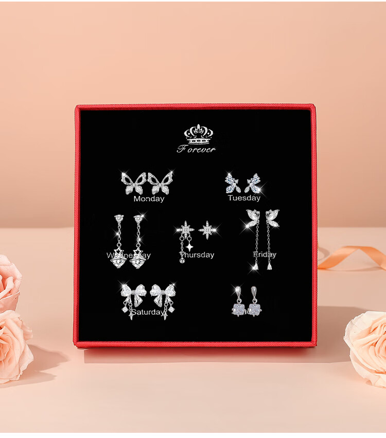 Jianlu Silver Needle Earring Set One Week Earrings Gift Box Earrings for Women 2025 New Jewelry Birthday Gift for Girlfriend Temperament Earrings Seven-piece Gift Box Set