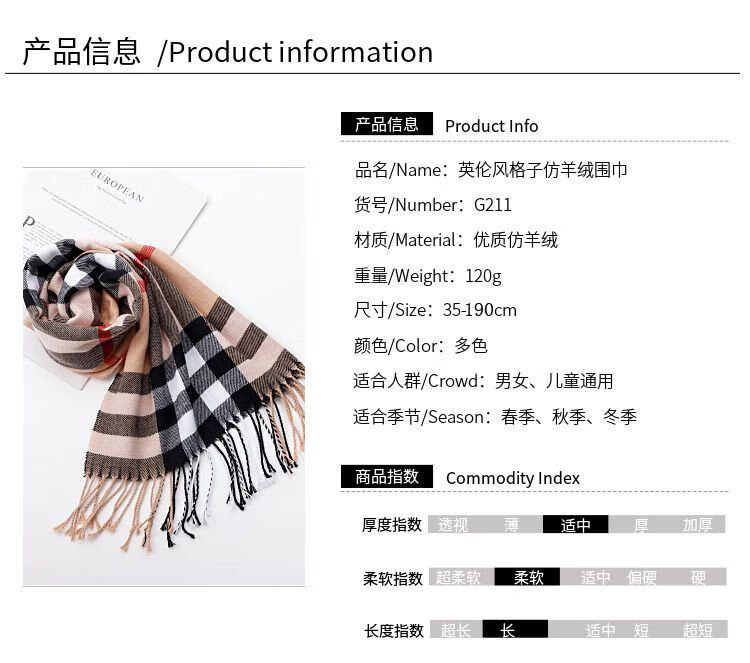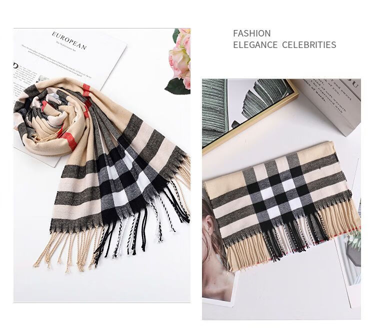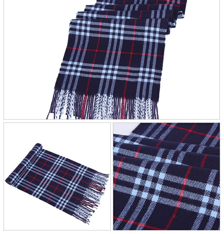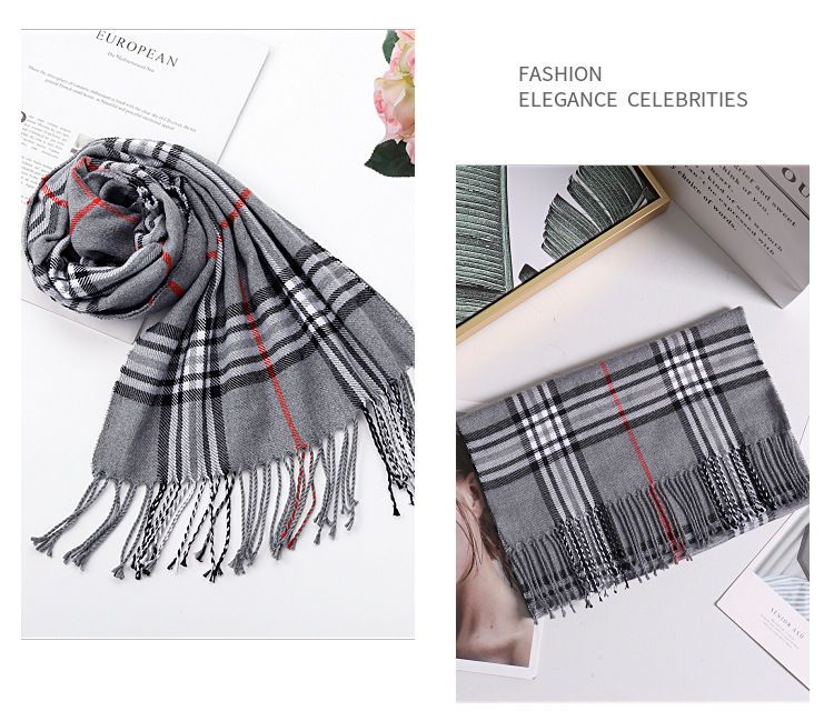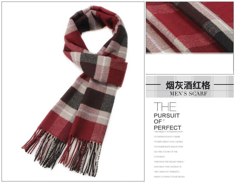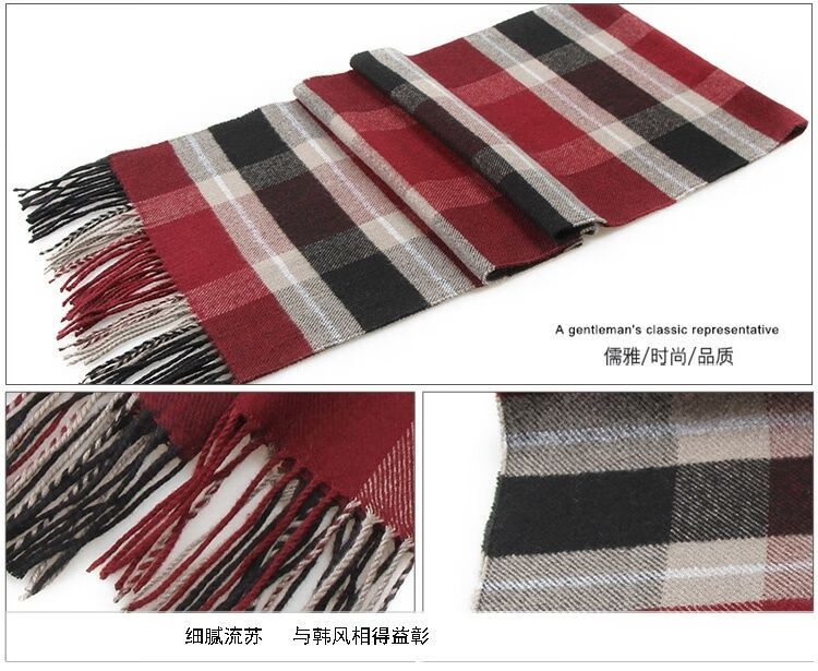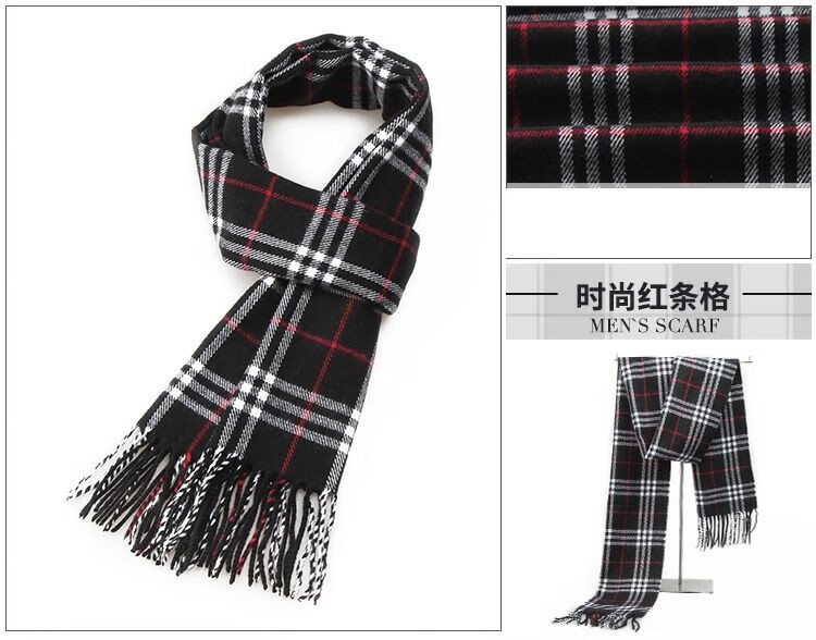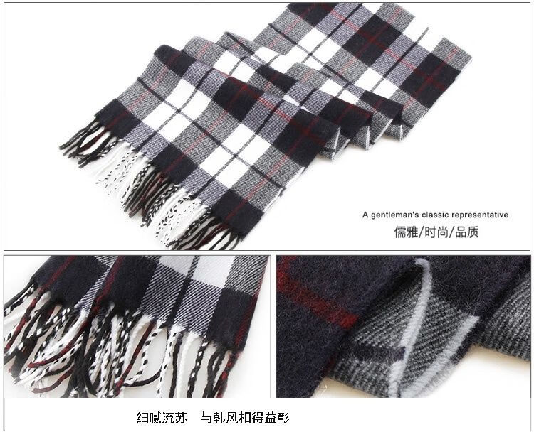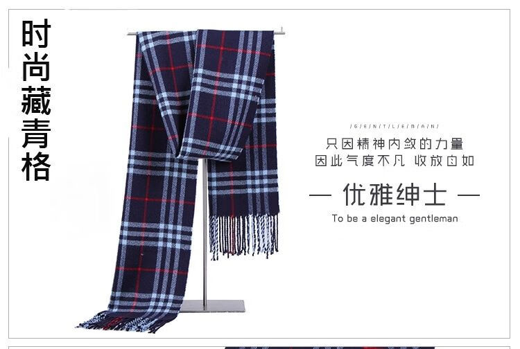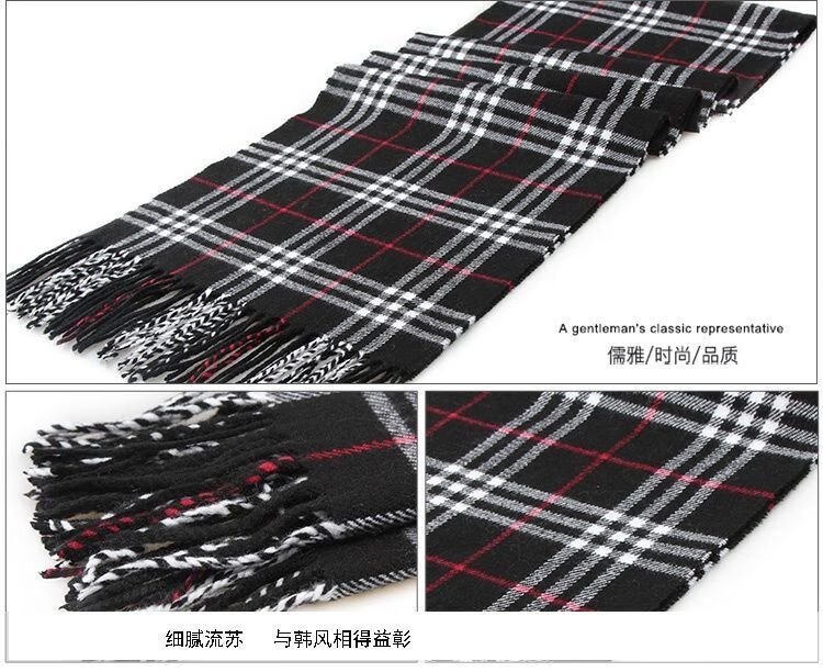Bijinger men's handkerchief scarf for middle-aged and elderly men autumn and winter warm scarf long thickened high-end imitation sheep fashion black gray (large grid)