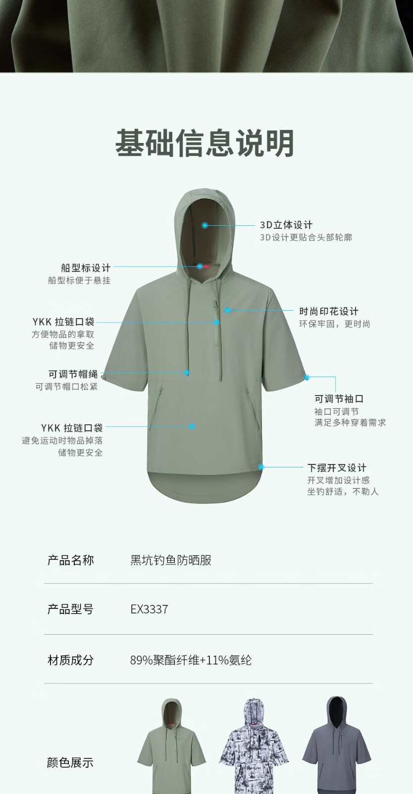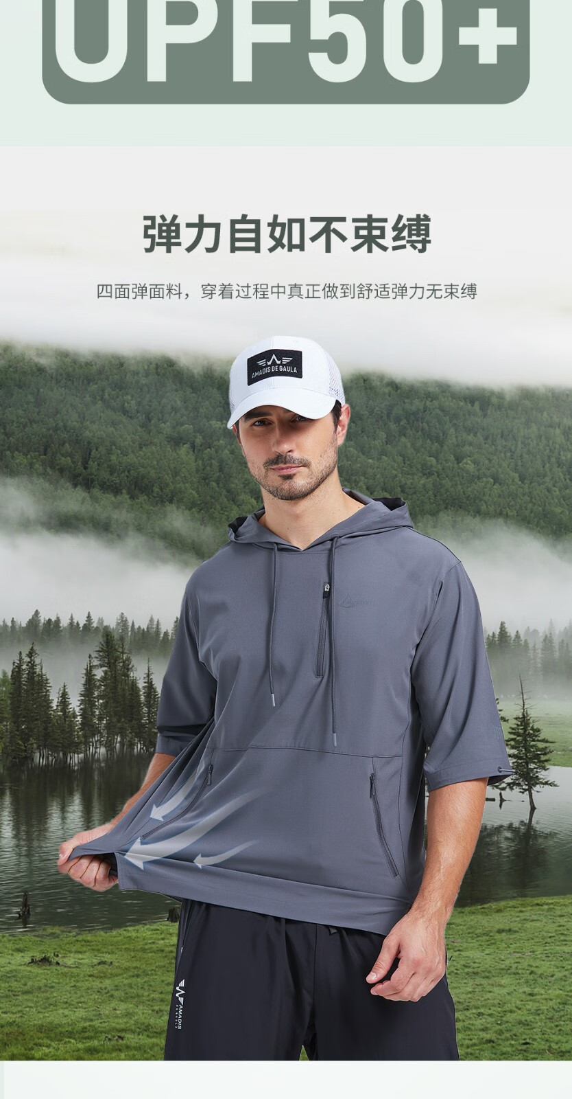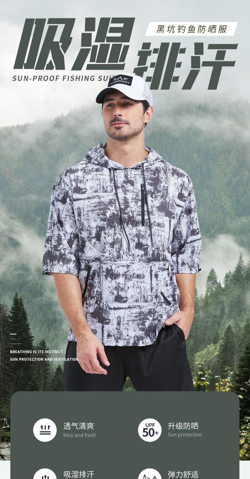 Amadeus Degora fishing suit men's summer outdoor sports quick-drying breathable sun protection clothing ice silk thin hooded short-sleeved Longjing Green L