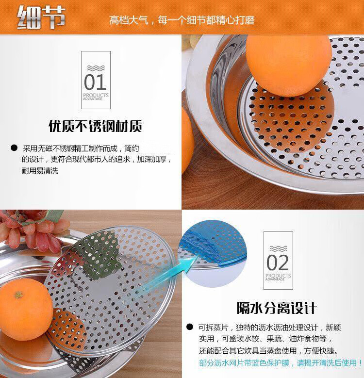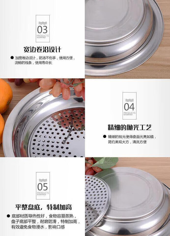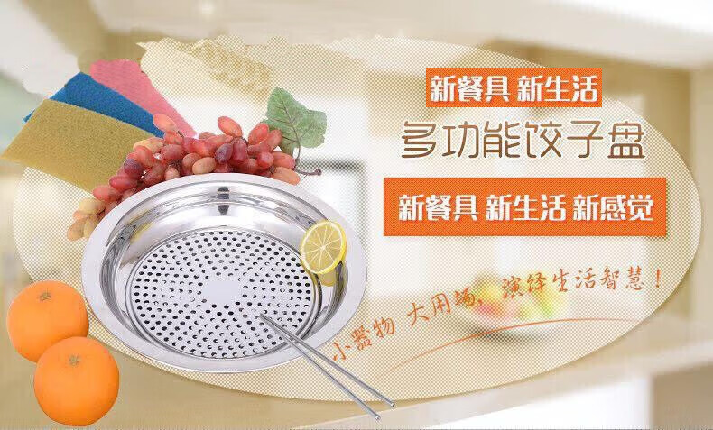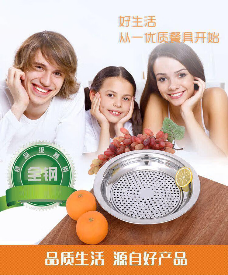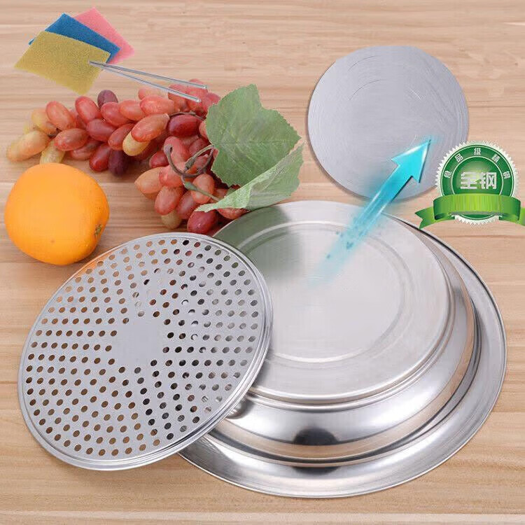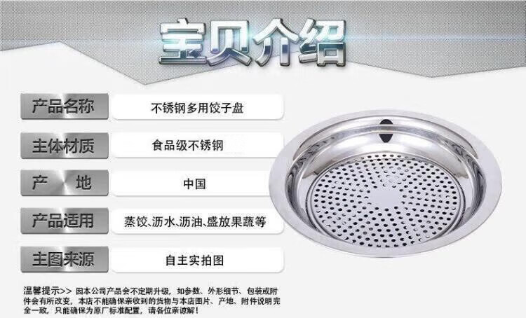 Ruipiao stainless steel dumpling plate dumpling plate drained dumpling plate stainless steel plate double layer plate tray round plate flat 30CM thickened