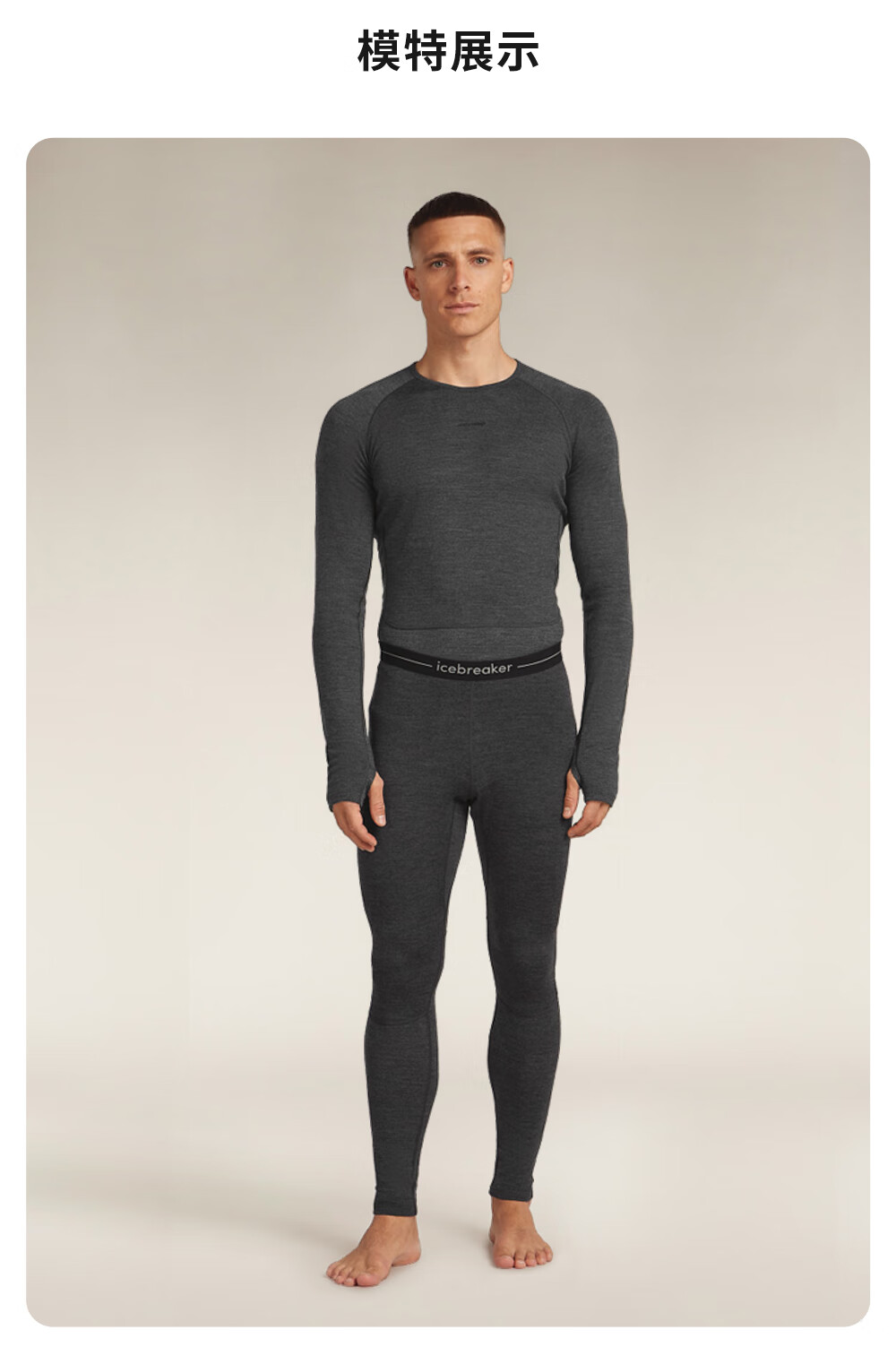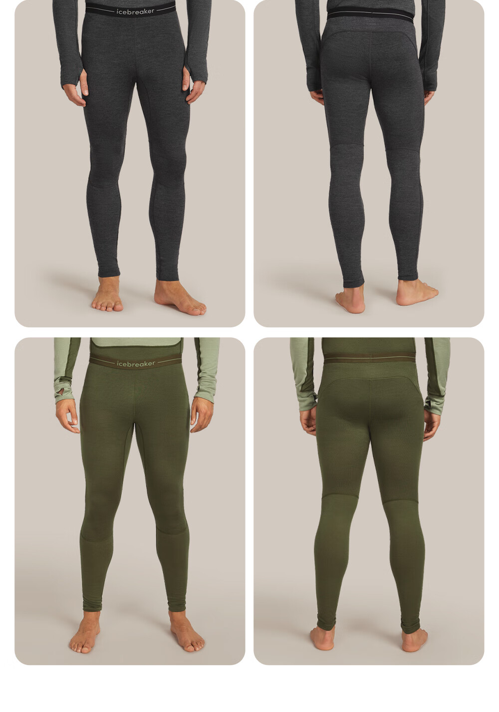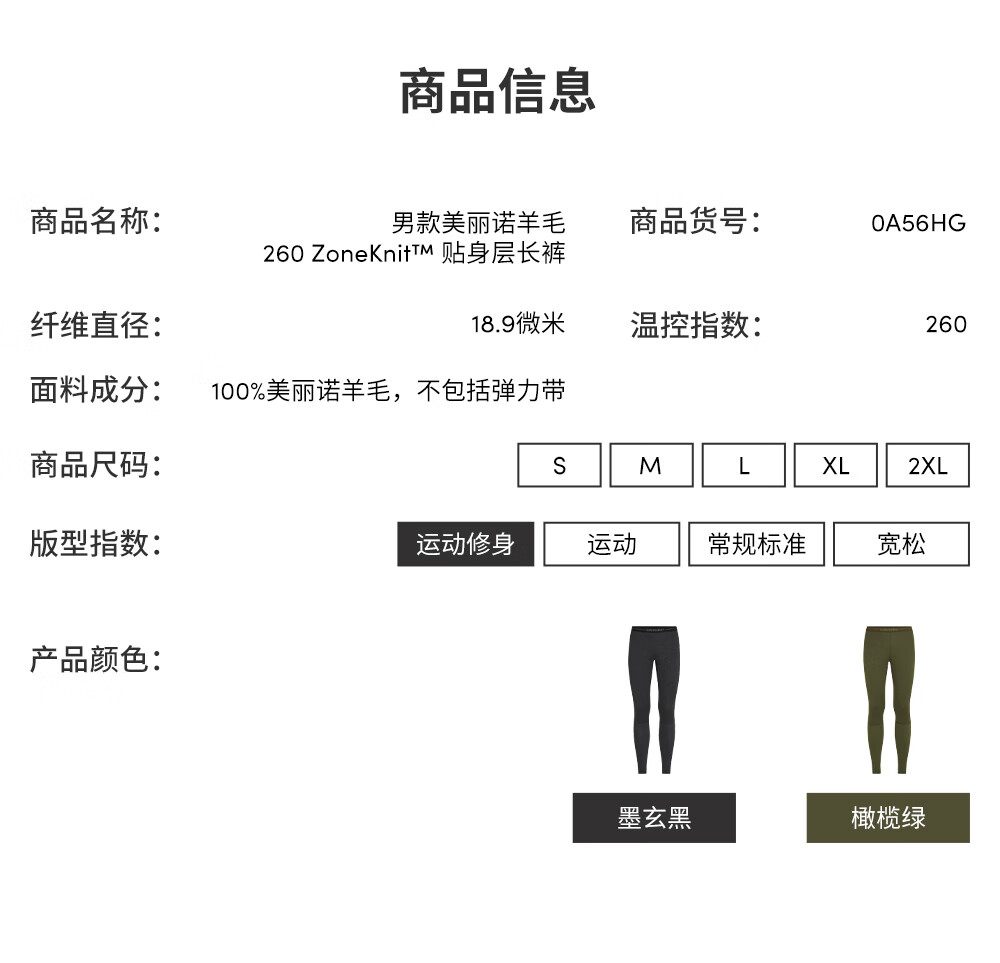 Icebreaker merino wool men's 260ZoneKnit machine washable outdoor sports thermal functional underwear close-fitting trousers 091-Pure Black/Ink Black-24 M
