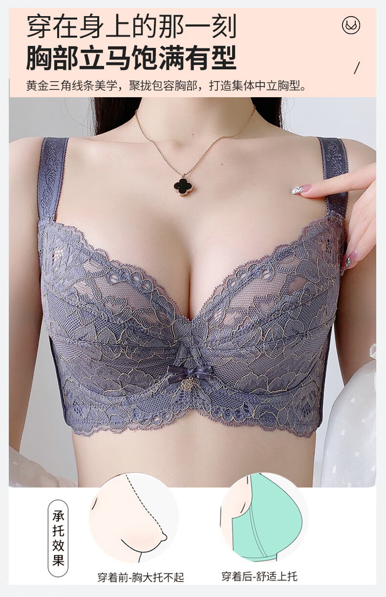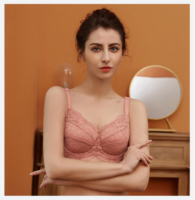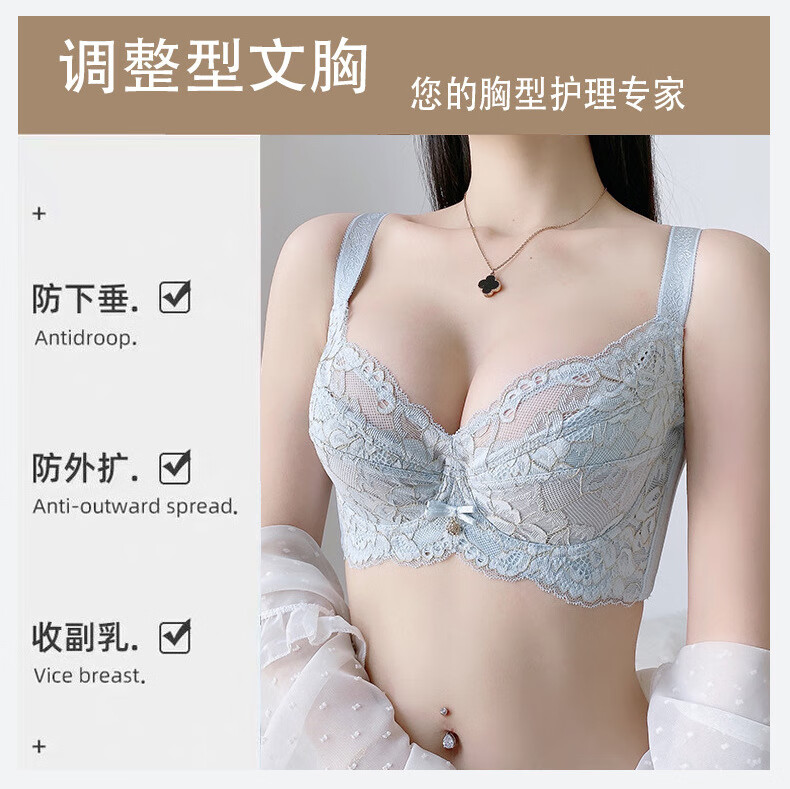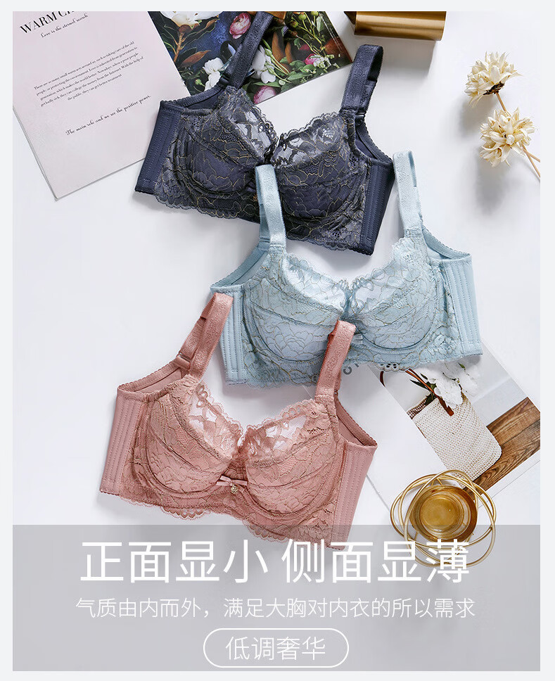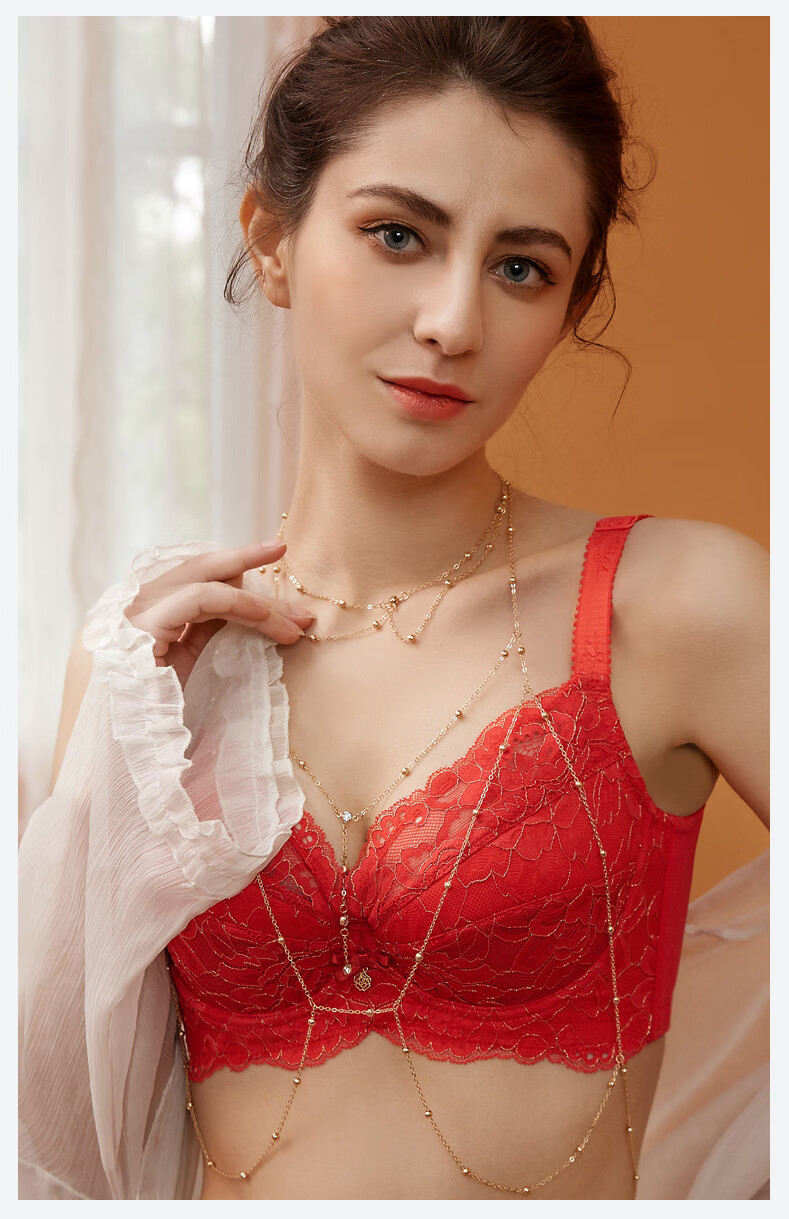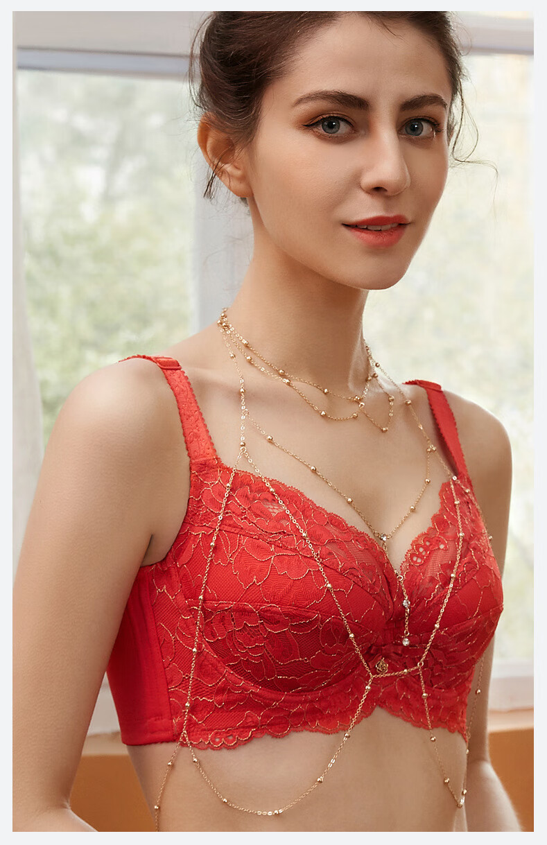 Aimu Autumn and Summer Latex Full Cup Large Size Underwear Big Breast Makes Smaller Push-up Bra to Shrink Secondary Breasts and Prevent Sagging Adjustable Bra Red/Set 34/75B Thin Cup Approximately 0.3CM