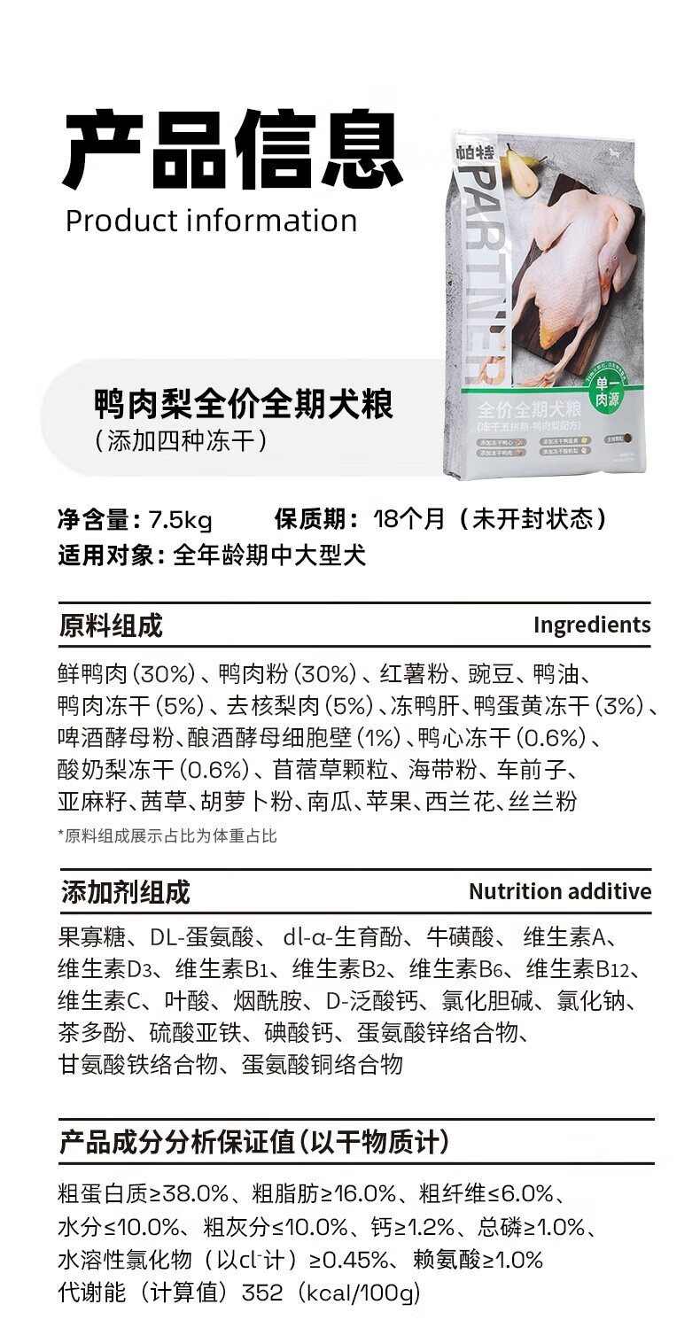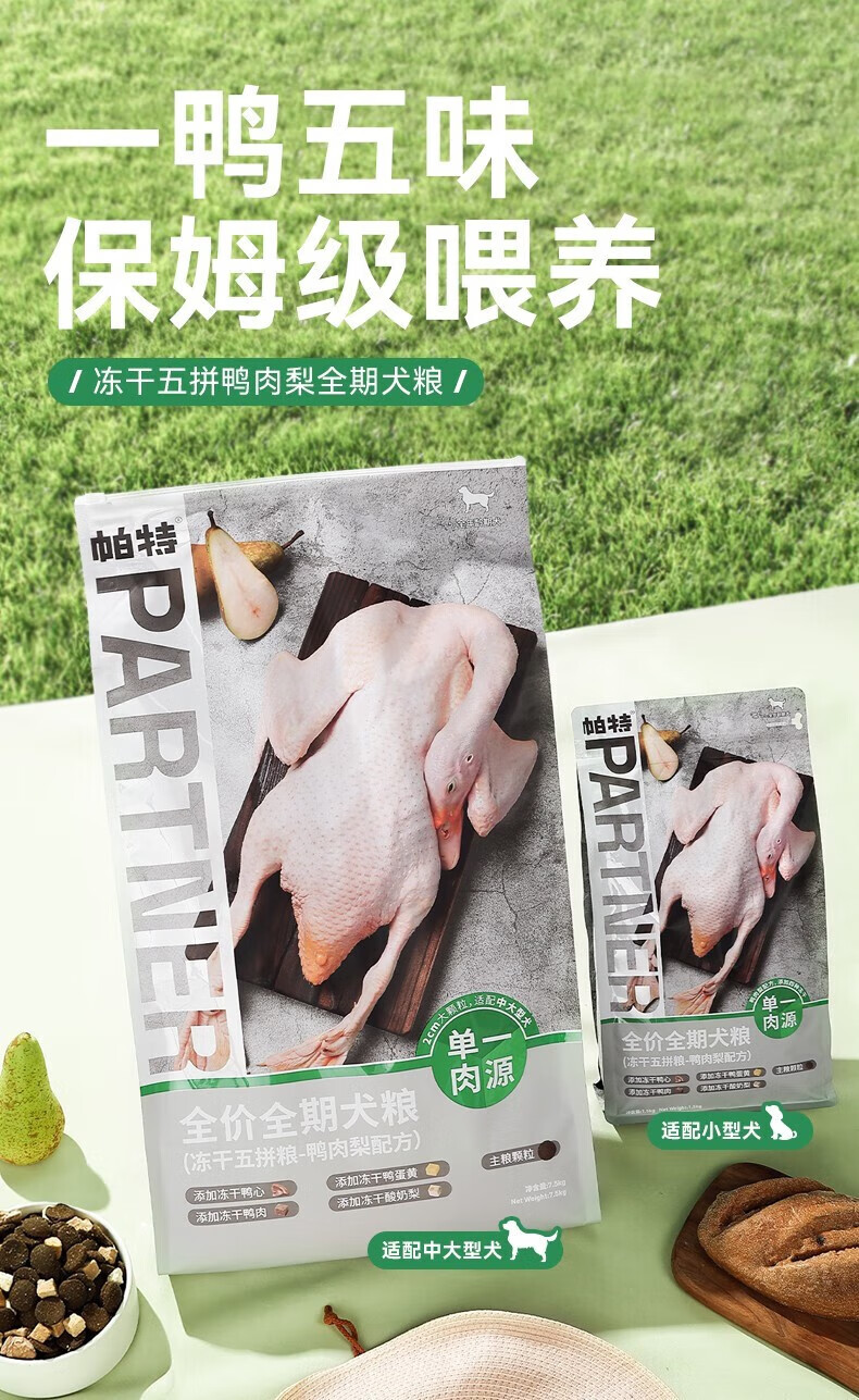 Pat comida para perros liofilizada carne de pato de cinco piezas y pera precio completo comida para perros a término perro pequeño cachorro perro adulto perro mediano comida general para perros, carne de pato y pera comida para perros liofilizada 7,5 kg (partículas grandes)