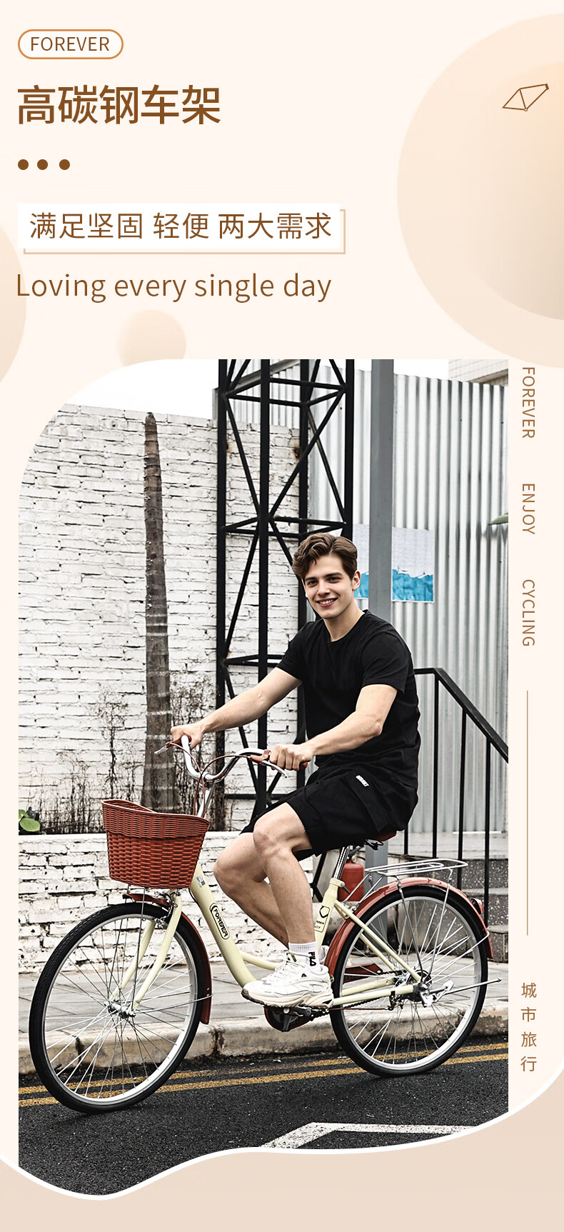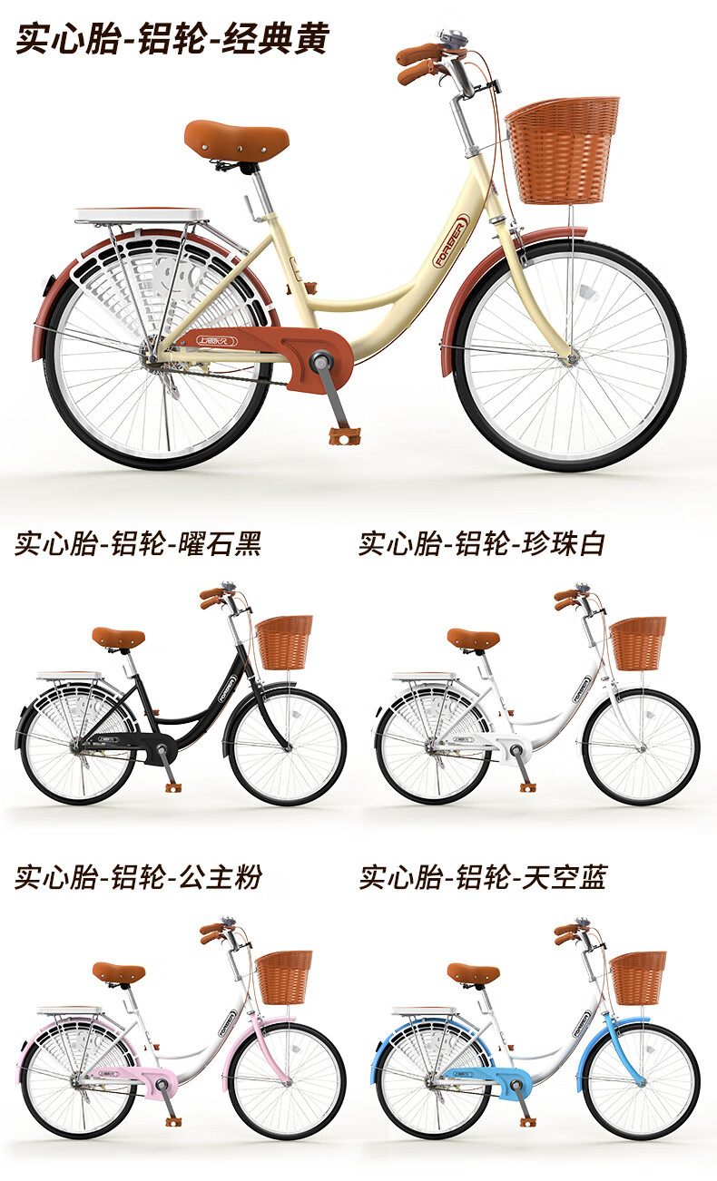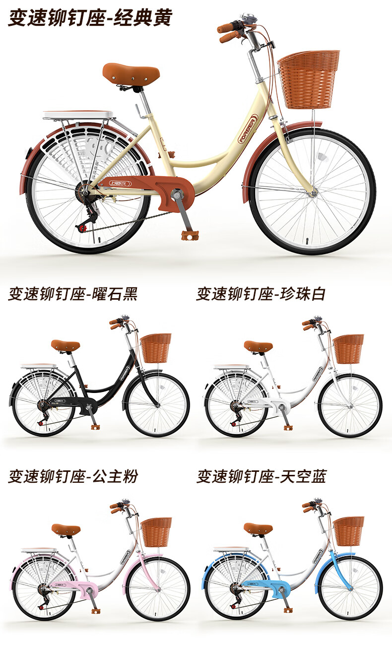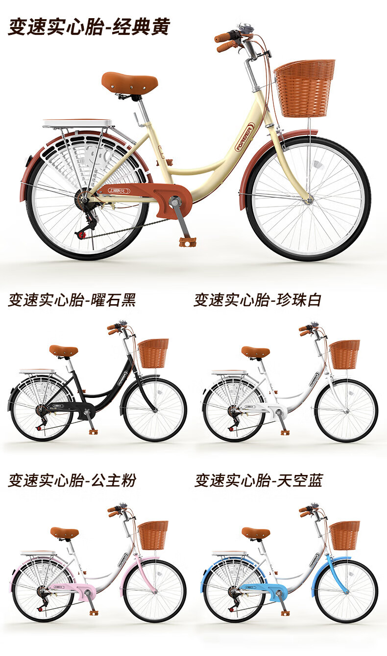 Permanently manned variable-speed bicycle for adults, female commuters, parent-child bicycles, student ladies with children, optional inflatable/solid tires, upgraded version, lightweight aluminum wheel sealed shaft, classic yellow 24 inches, suitable for 140-160cm