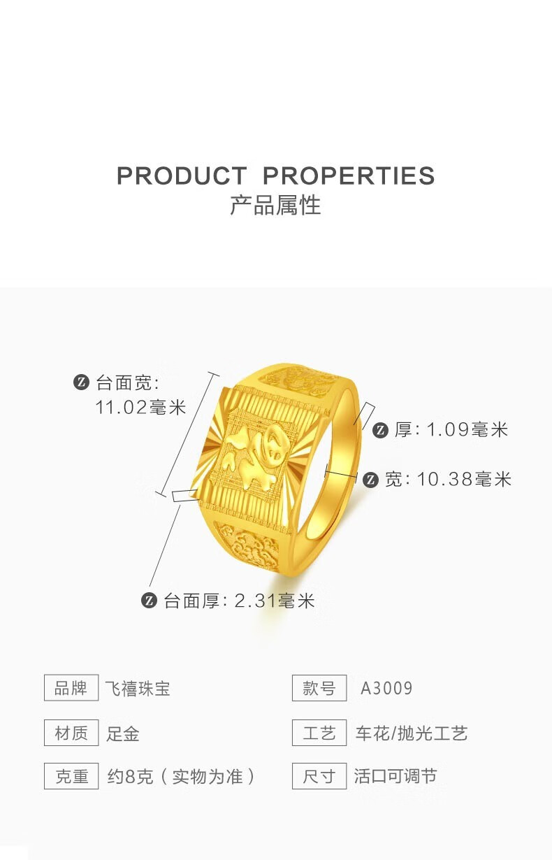 Feixi gold men's ring by gram, pure gold lucky gold jewelry for men, gold ring for the elderly, fashionable style, 8.98 grams, pure gold 999.9