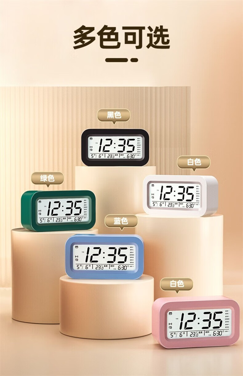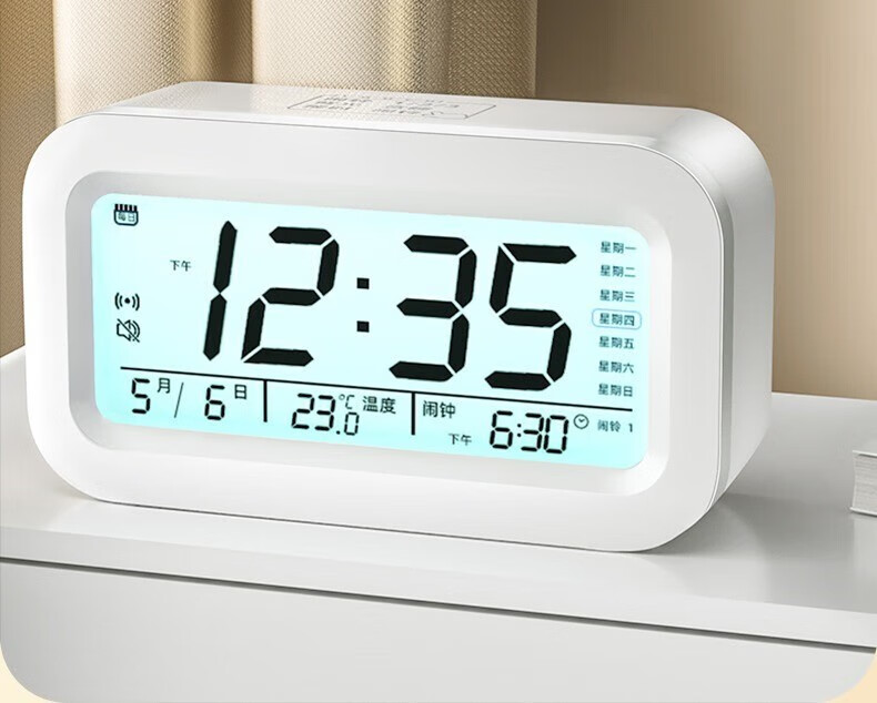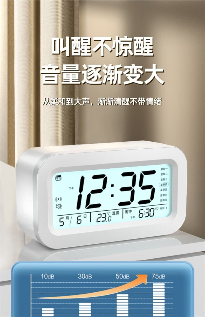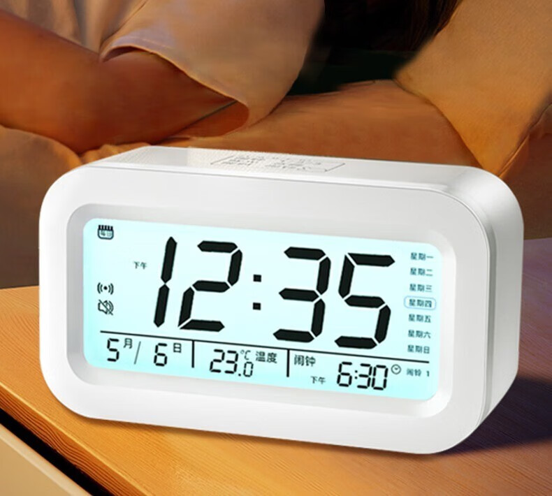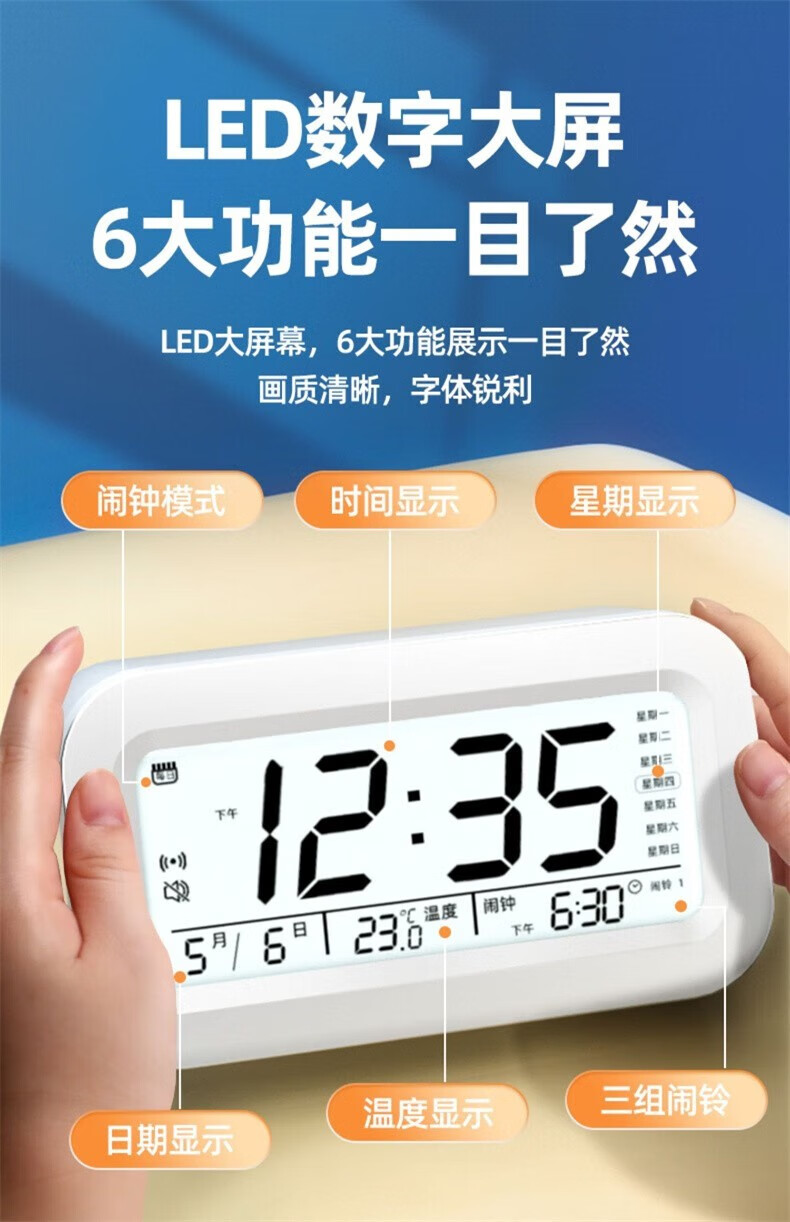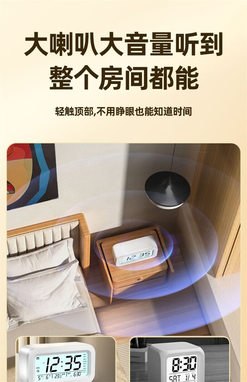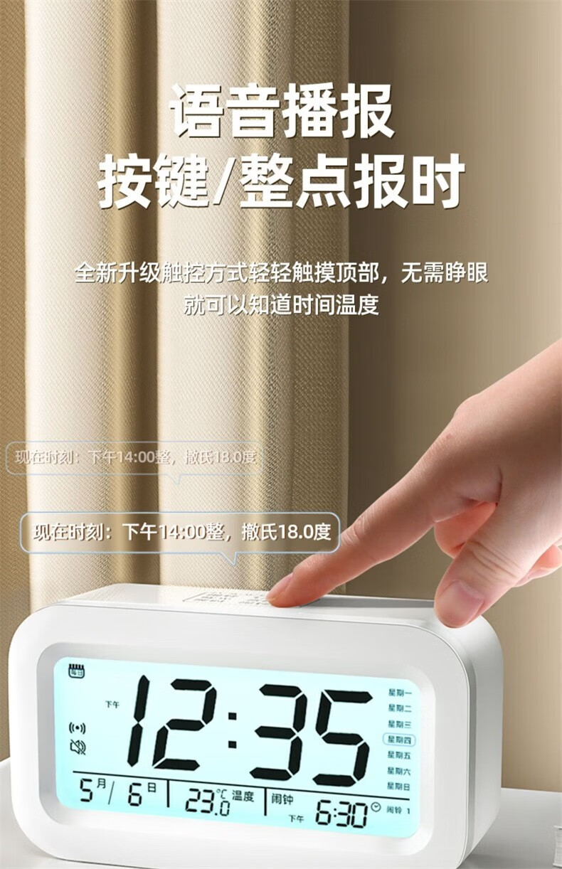 CTRLEND electronic alarm clock student smart luminous large screen electronic clock multi-function temperature and humidity display smart bedside alarm clock elegant white rechargeable smart broadcast