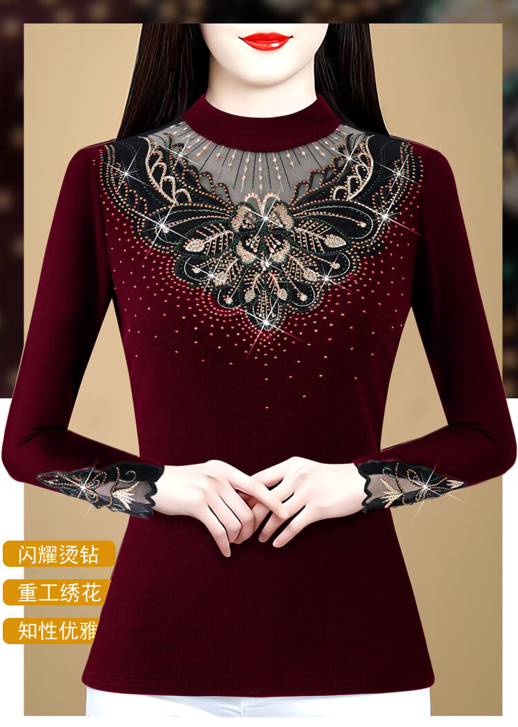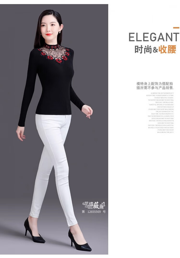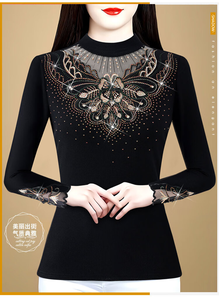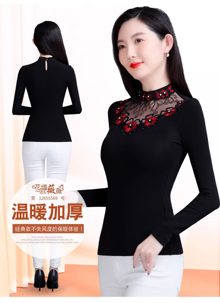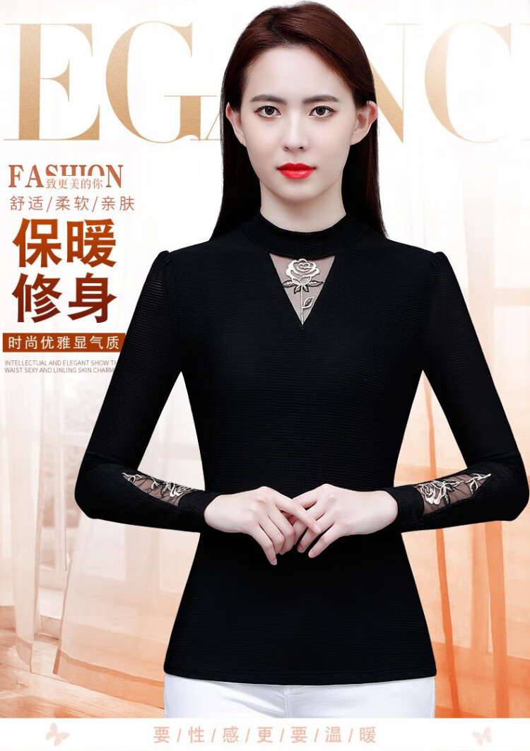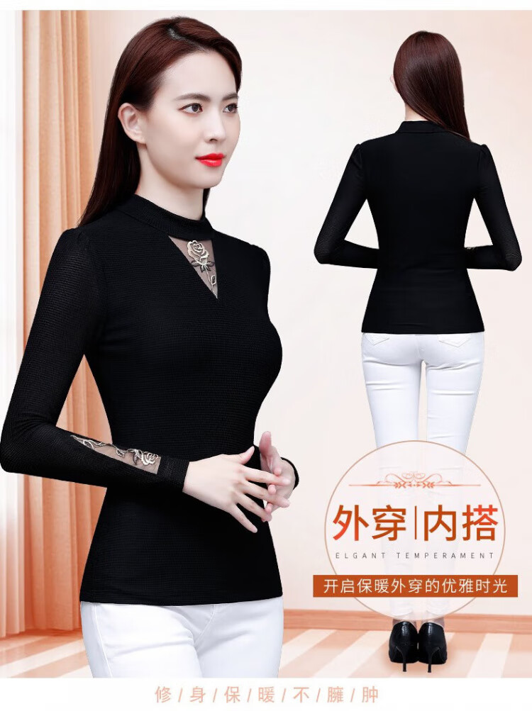 Blue half turtleneck mesh bottoming shirt for women spring and autumn new style 2025 inner wear and outer wear foreign style single wear women's bottoming shirt 853 plus velvet XL recommended 110-120Jin Jin is equal to 0.5 kg