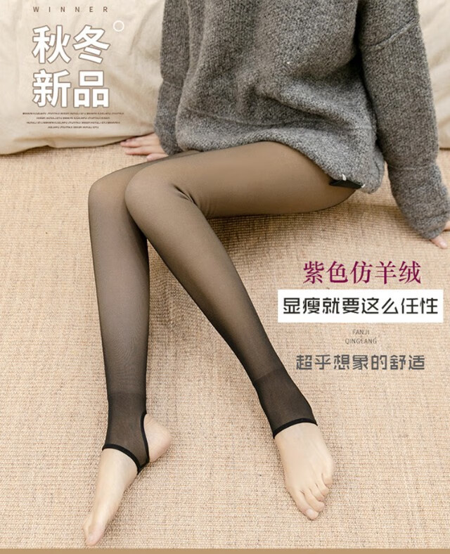 Hengyuanxiang 500g thickened and velvet fake see-through leggings for women, one-piece translucent autumn and winter plus size, extra thick skin color, velvet gray translucent skin (500g) foot stepping style (one size fits all 80-135Jin Jin is equal to 0.5kg)