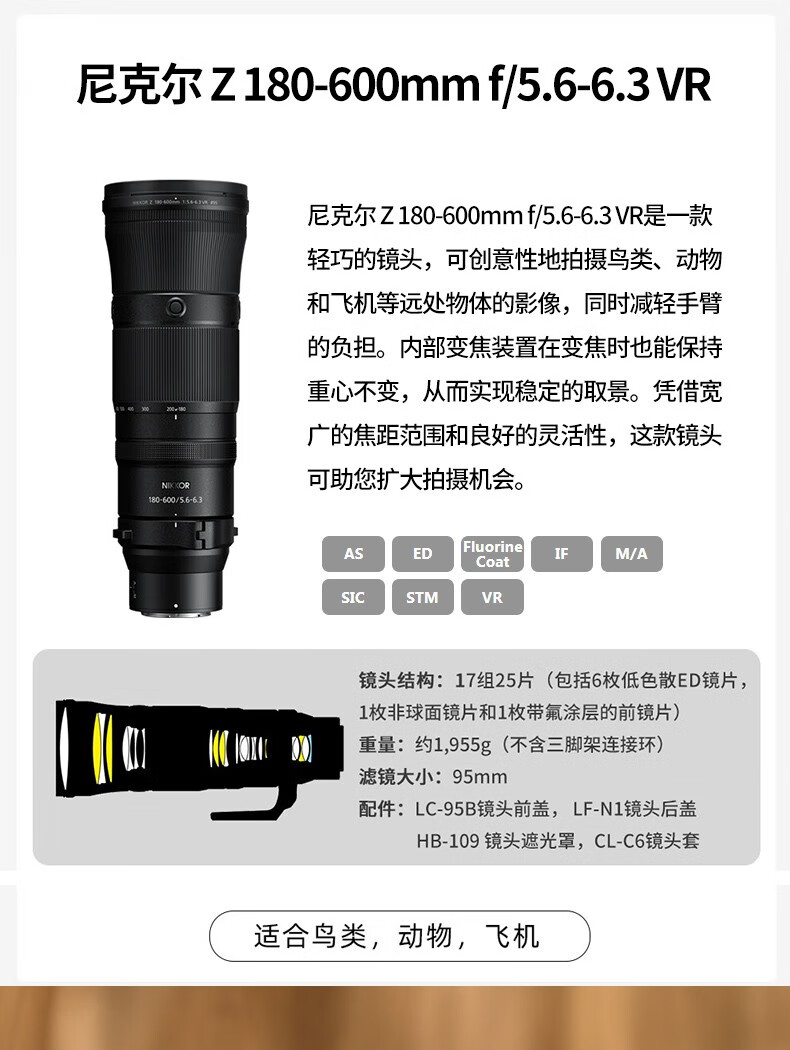 Nikon Micro Single Digital Z Mount Bird Shooting Telephoto Telephoto Lens z70-180 Z180-600 Brand New National Bank z180-600 f5.6-6.3VR