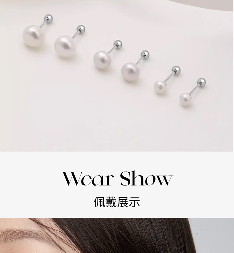 Qi Xiaomi s999 Pure Silver Freshwater Pearl Earrings Women's Fashion Jewelry Earrings Earrings Earrings for Sleeping Without Removing Screws Small Ear Bone Nails 4mm Pair of Earrings 999 Pure Silver Suitable for Ear Care
