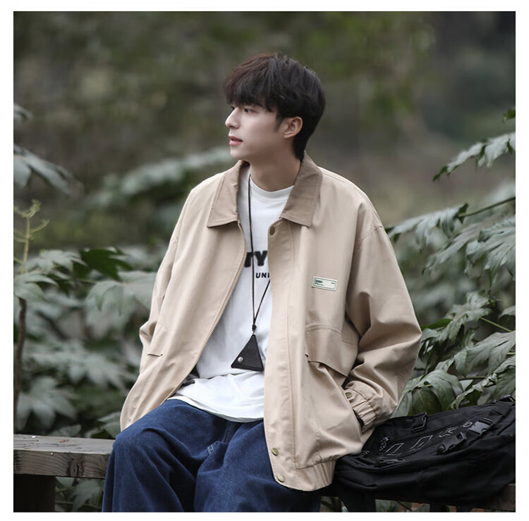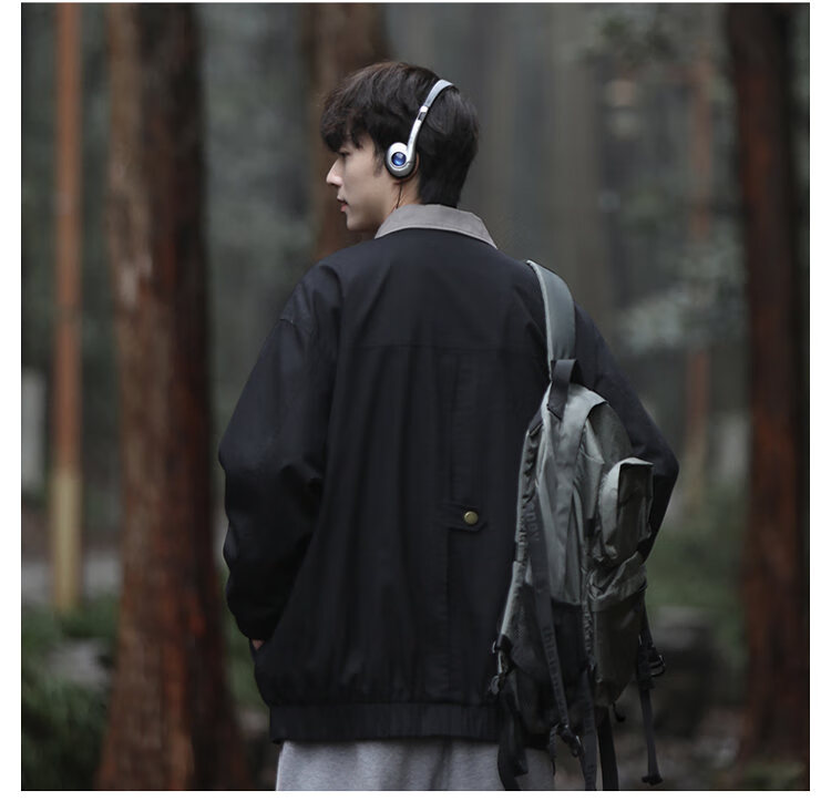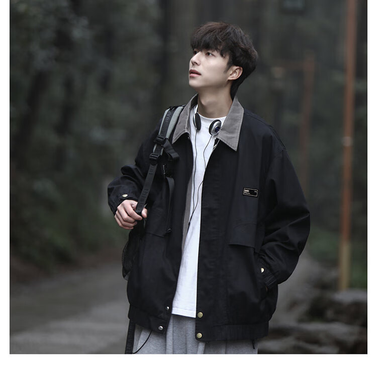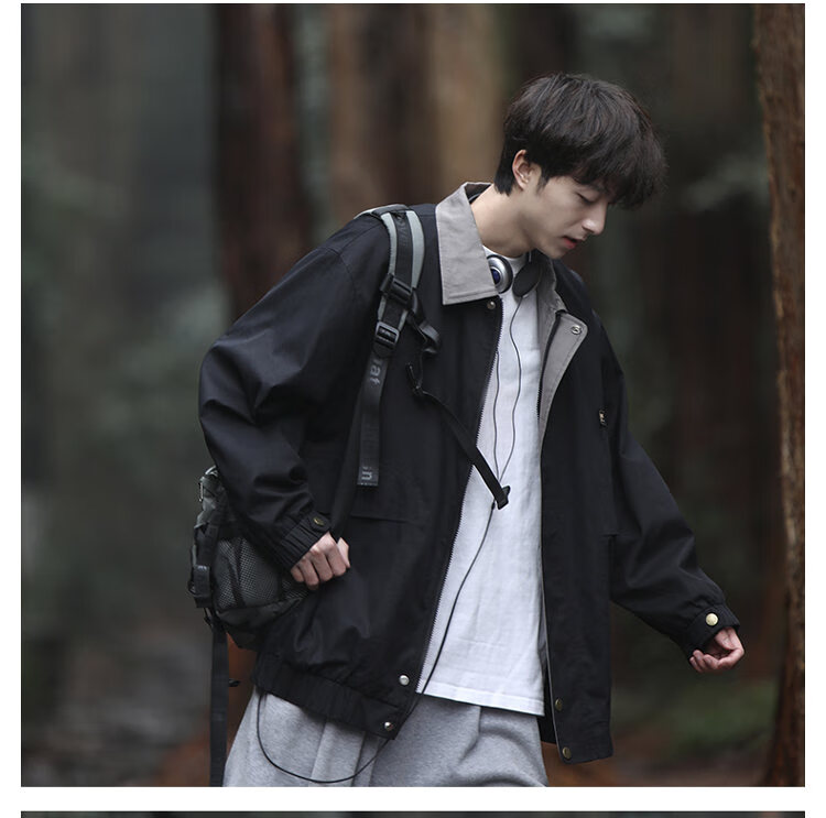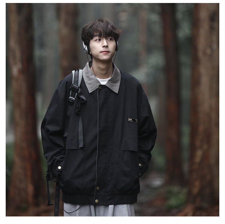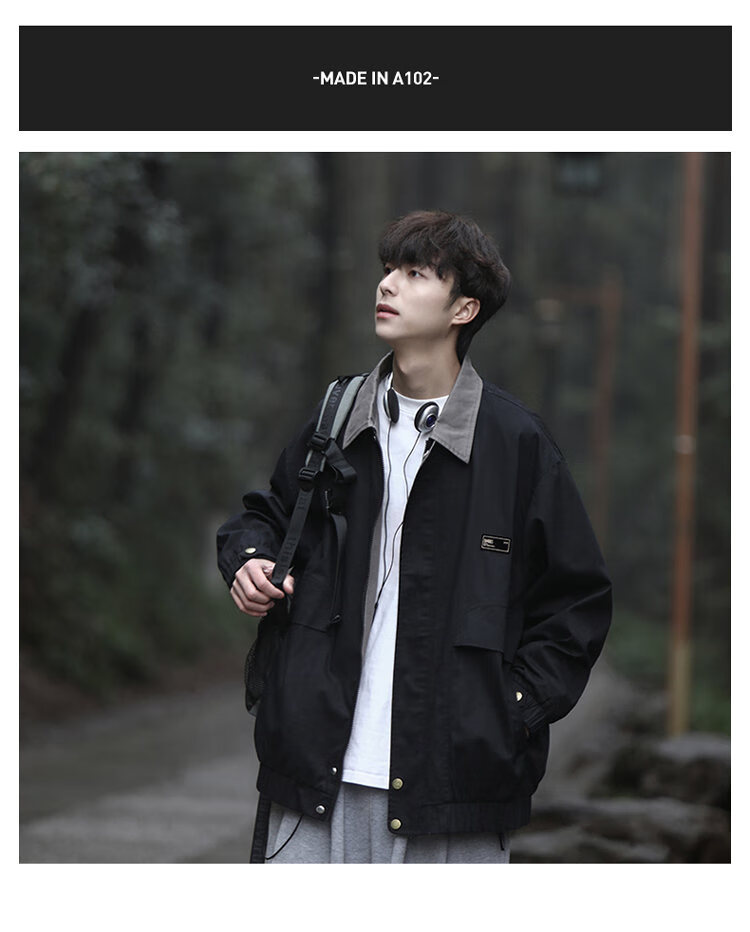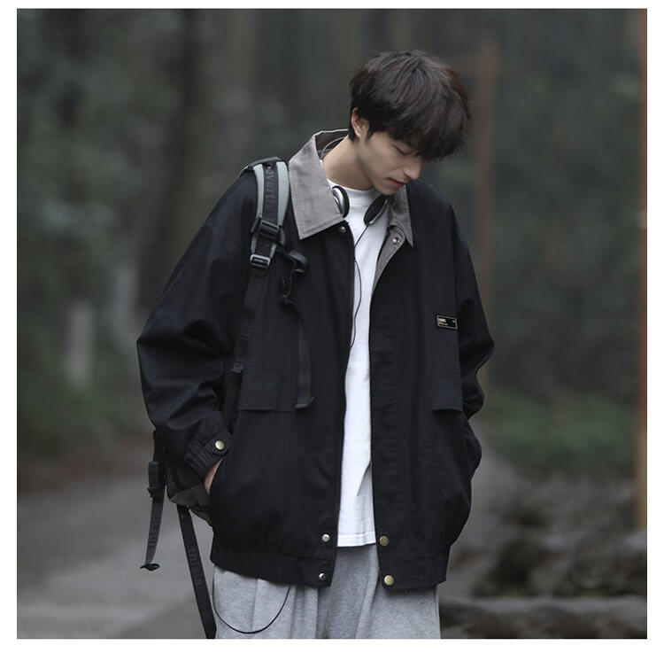 OEMG Japanese cityboy hunting lapel jacket men's spring, autumn and summer trendy baseball uniform workwear casual jacket black XL recommended 125-140Jin Jin equals 0.5 kg