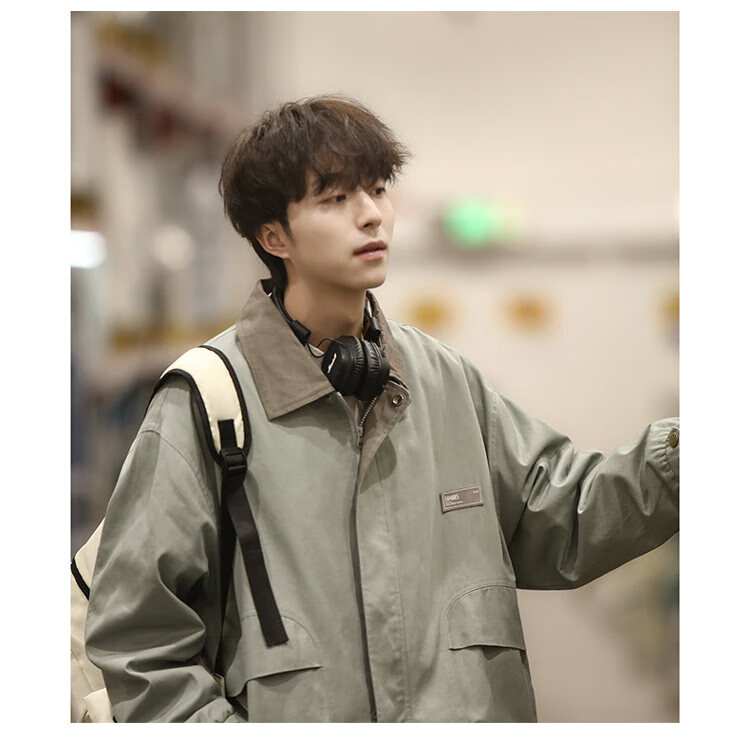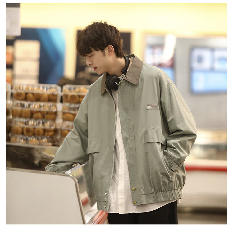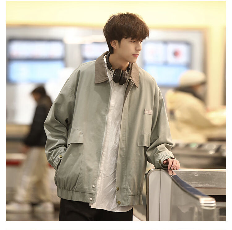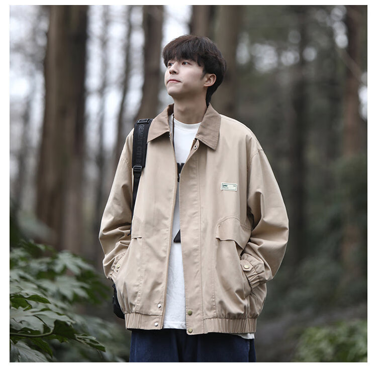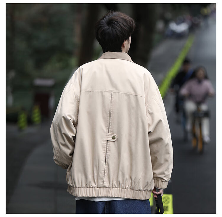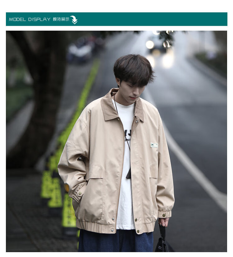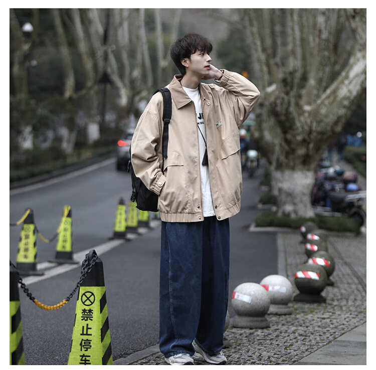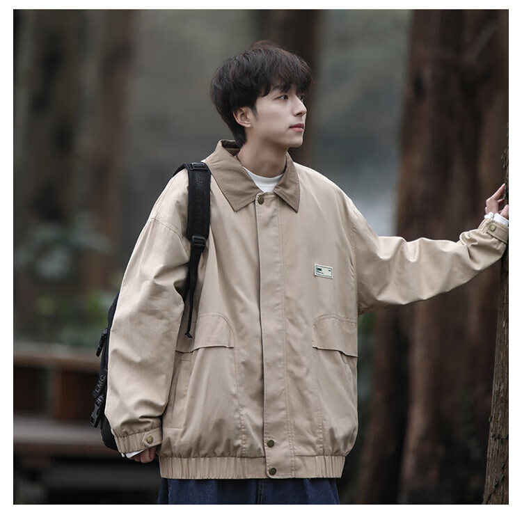 OEMG Japanese cityboy hunting lapel jacket men's spring, autumn and summer trendy baseball uniform workwear casual jacket black XL recommended 125-140Jin Jin equals 0.5 kg