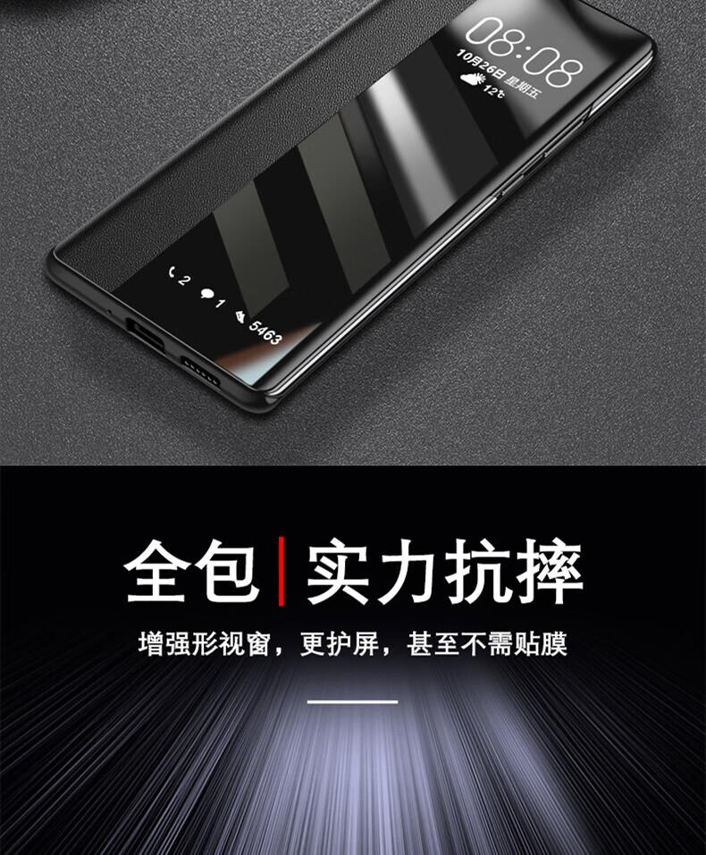 Jingjingshield Huawei mate60 mobile phone case flip cover new men's mate60Pro plain leather leather case smart sleep shell mt60 protective cover all-inclusive anti-proof cool black-with full screen film + lens film Huawei Mate 60
