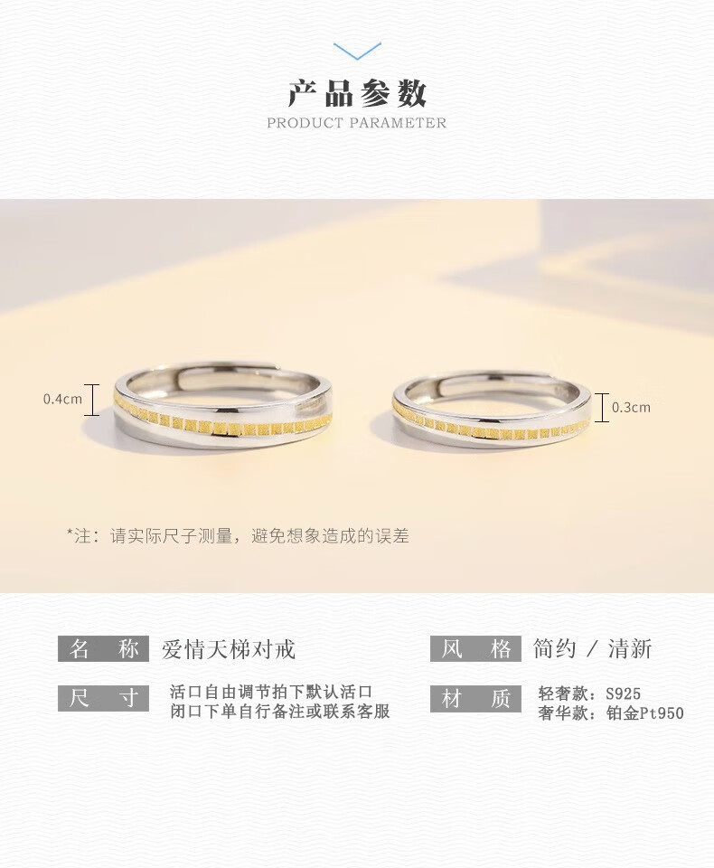 MZMZ Platinum Ring Love Ladder Series pt950 Platinum Pair Ring Engagement Wedding Birthday Anniversary Gift Light Luxury Style-Love Ladder Series Couple Ring