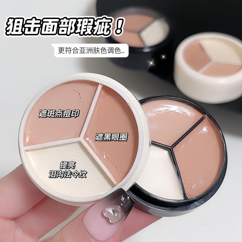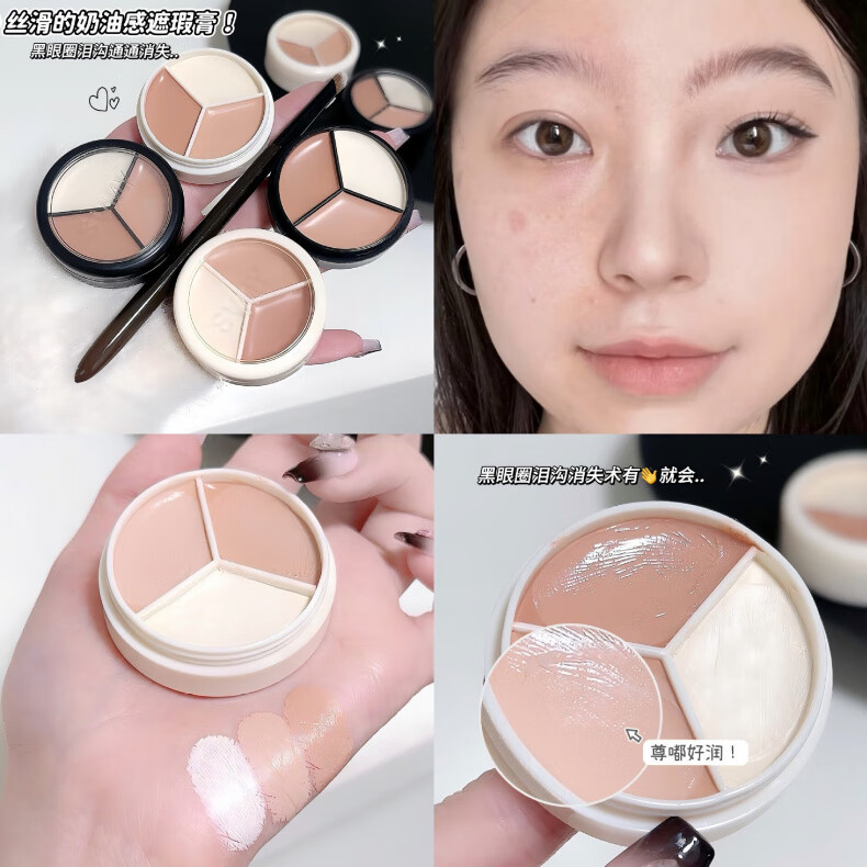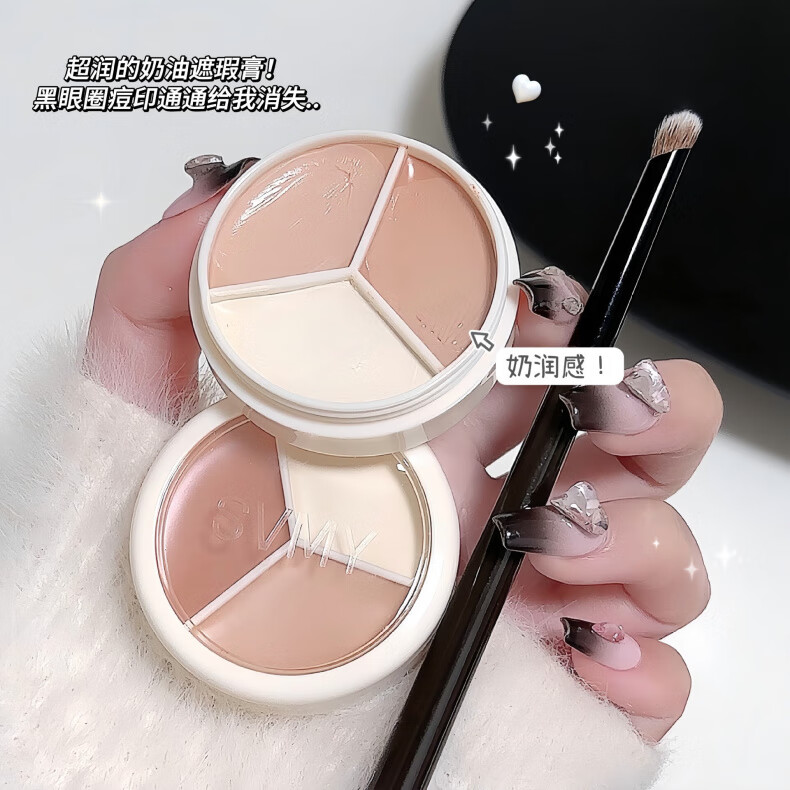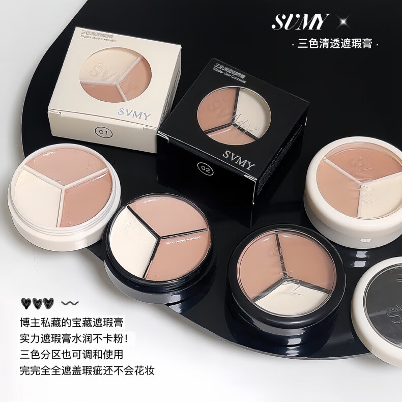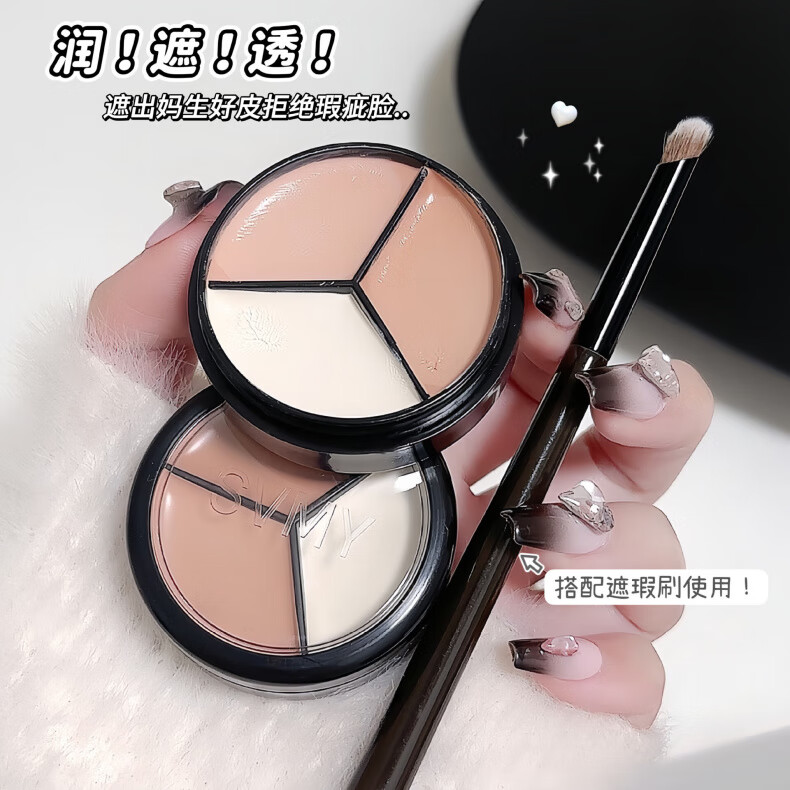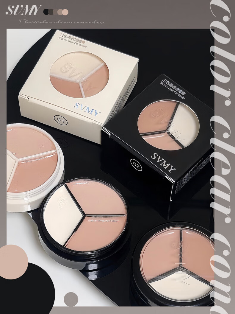 SVMY three-color concealer for pregnant women to cover spots, acne marks, dark circles, tear troughs, foundation makeup, three-color concealer white