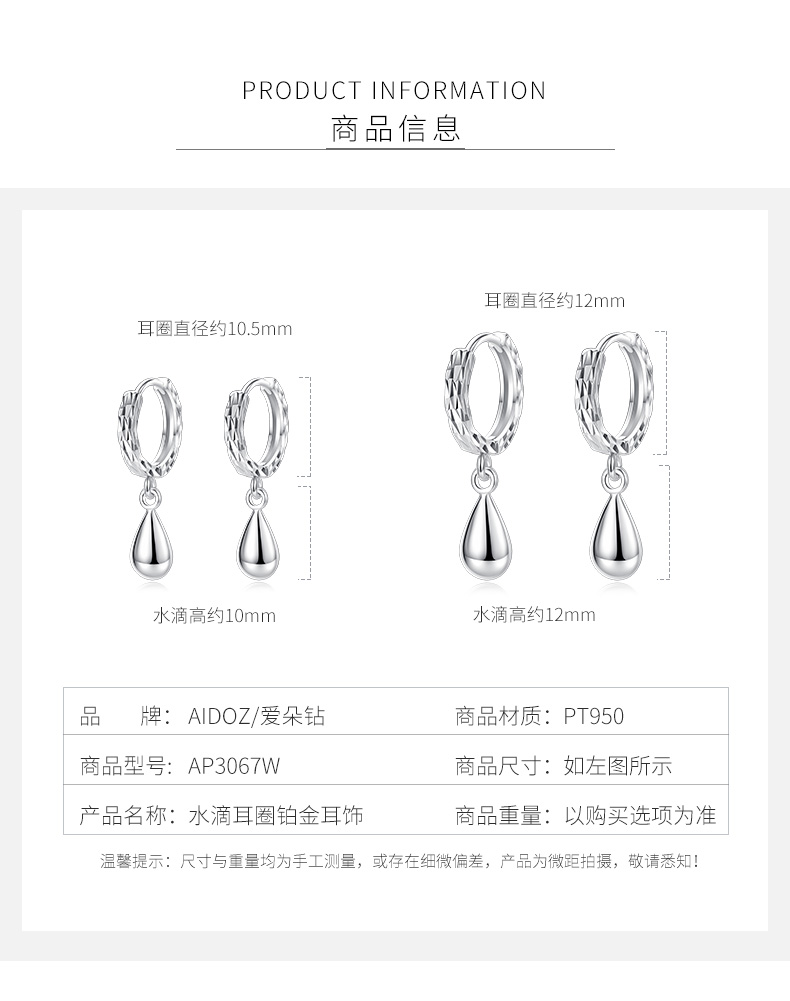 Aido Diamond Platinum Earrings Women's Earrings pt950 Platinum Women's Earrings Water Drop Earrings for Wife Large Size Pair 4.2-4.4g + Delivery Certificate