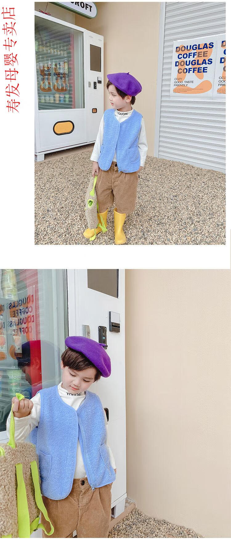 G.DUCKKIDS children's lamb velvet vest, boys and girls, infants, medium and large children, velvet vest, sleeveless jacket, inside and outside, off-white 80 cm, suitable for 70-80cm age 1-2