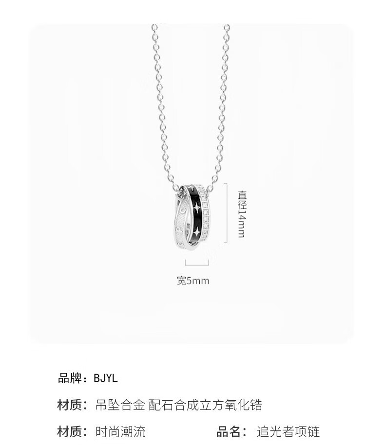 BJYL starburst necklace men's trendy hip-hop niche high-end double-ring pendant boys' necklace 2026 new Internet celebrity sweatshirt chain necklace