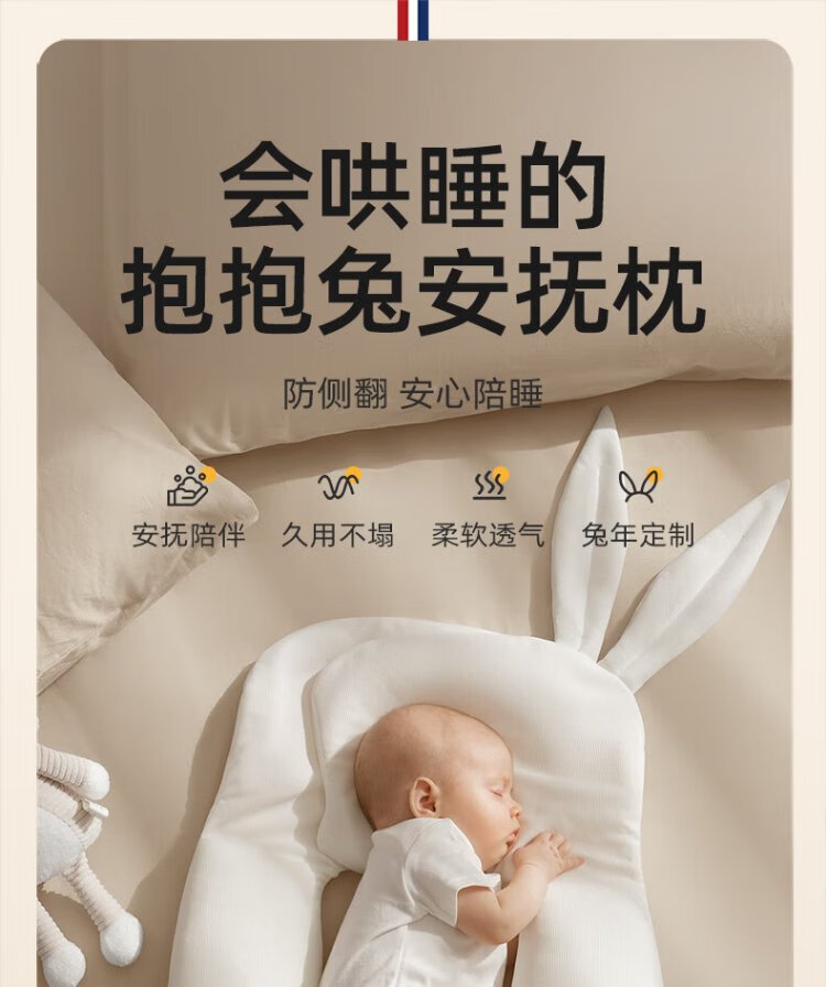 EVOCELER Baby Soothing Pillow Baby Pillow Anti-jumping Baby Soothing Pillow Multifunctional Rabbit Pillow Children's Gift Multifunctional Rabbit Soothing Pillow (White)