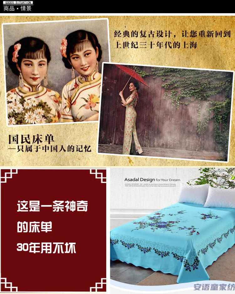 Porphyry oak old Shanghai cotton old coarse cloth sheets national old-fashioned mercerized nostalgic Shanghai printing thickened retro single piece Wealth and prosperity - pink 220x225cm - (for 1.5 meters bed)