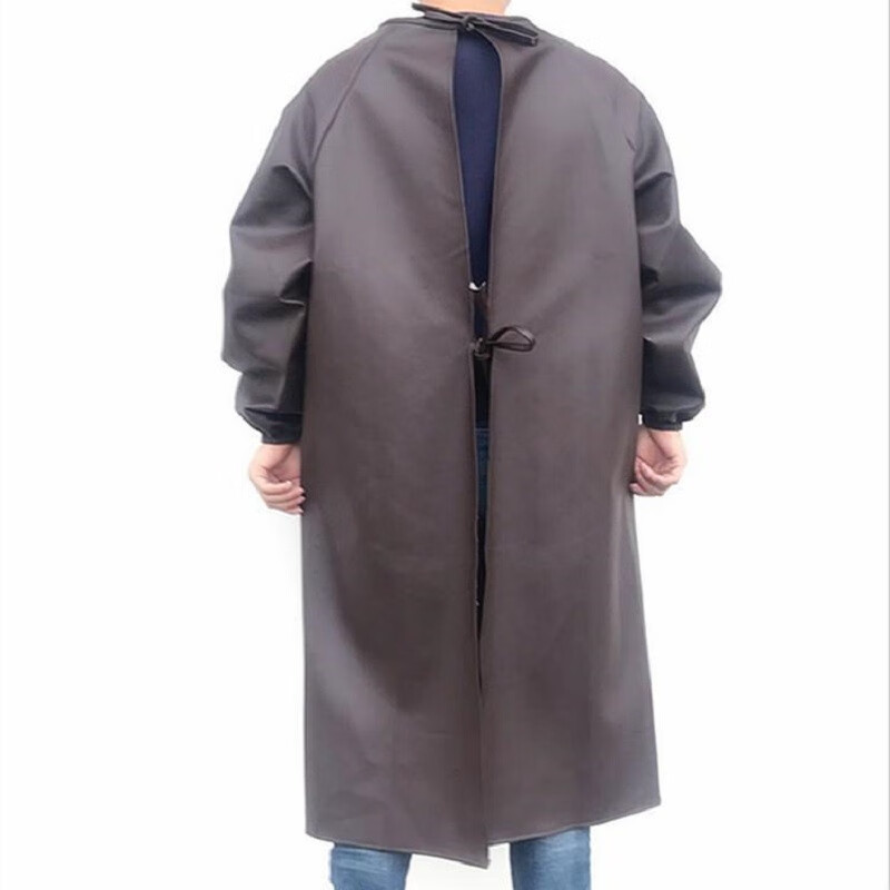 Haizhiqing Extra Thickened Leather Cover Apron Oil-proof Waterproof Dirty-Resistant Long Sleeve Reverse Dressing Farm Work Clothes Aquatic PU Black