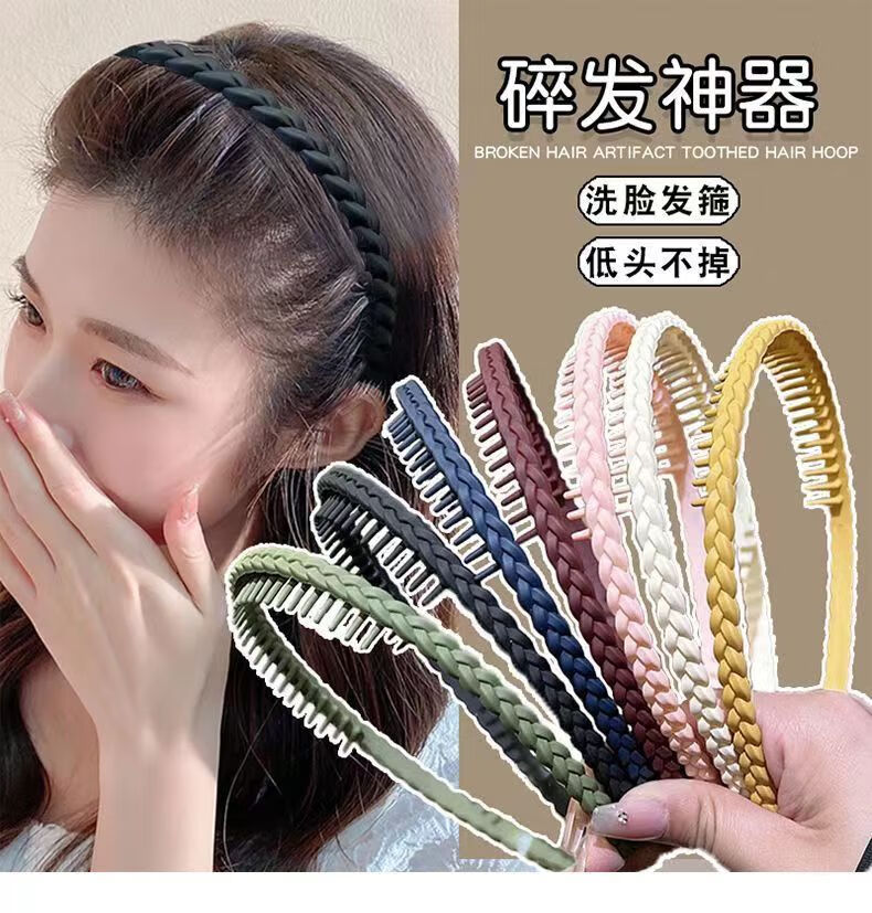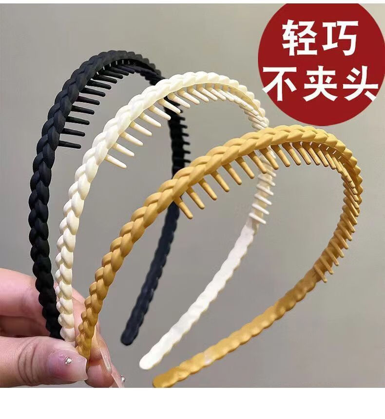 Qindu Pressure Hairband Women's 2023 Teeth Anti-Slip Hairpin Face Wash Headband Broken Hairpin Headwear Summer Hair Bundle Black