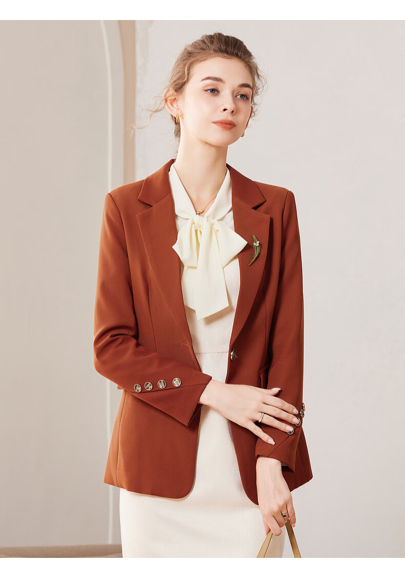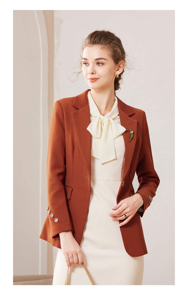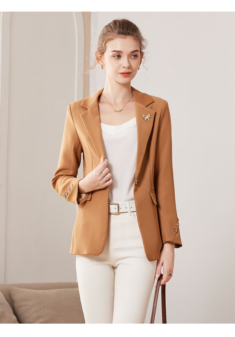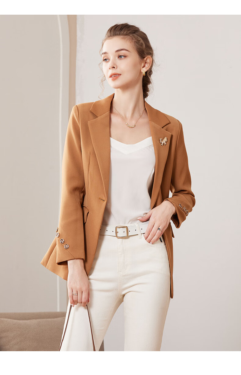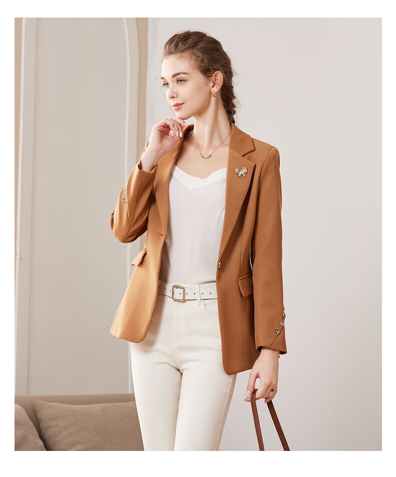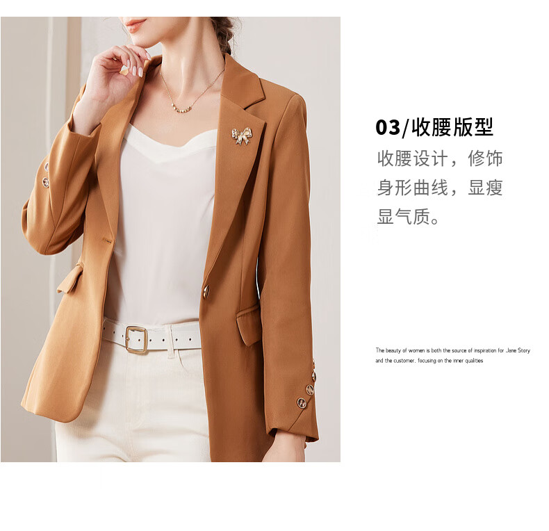 JANE STORY Classic Story Blazer Women's 2025 New Spring and Autumn Professional Wear Commuting High-end Suit Formal Top Caramel Color M