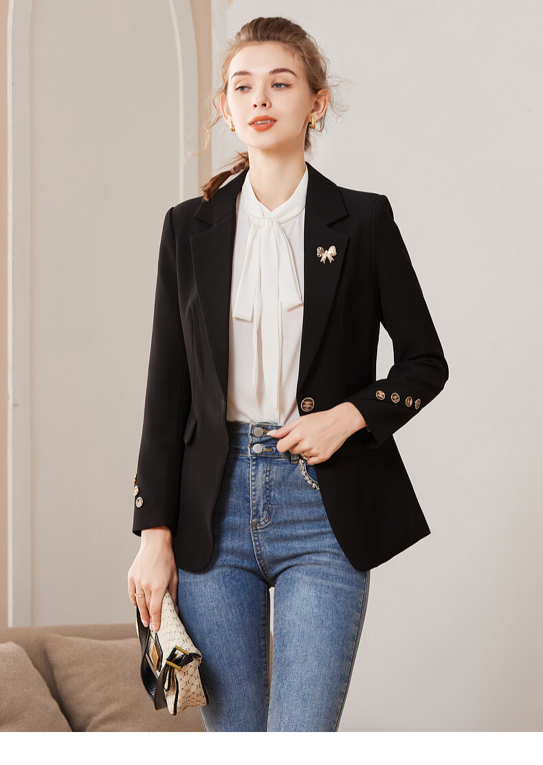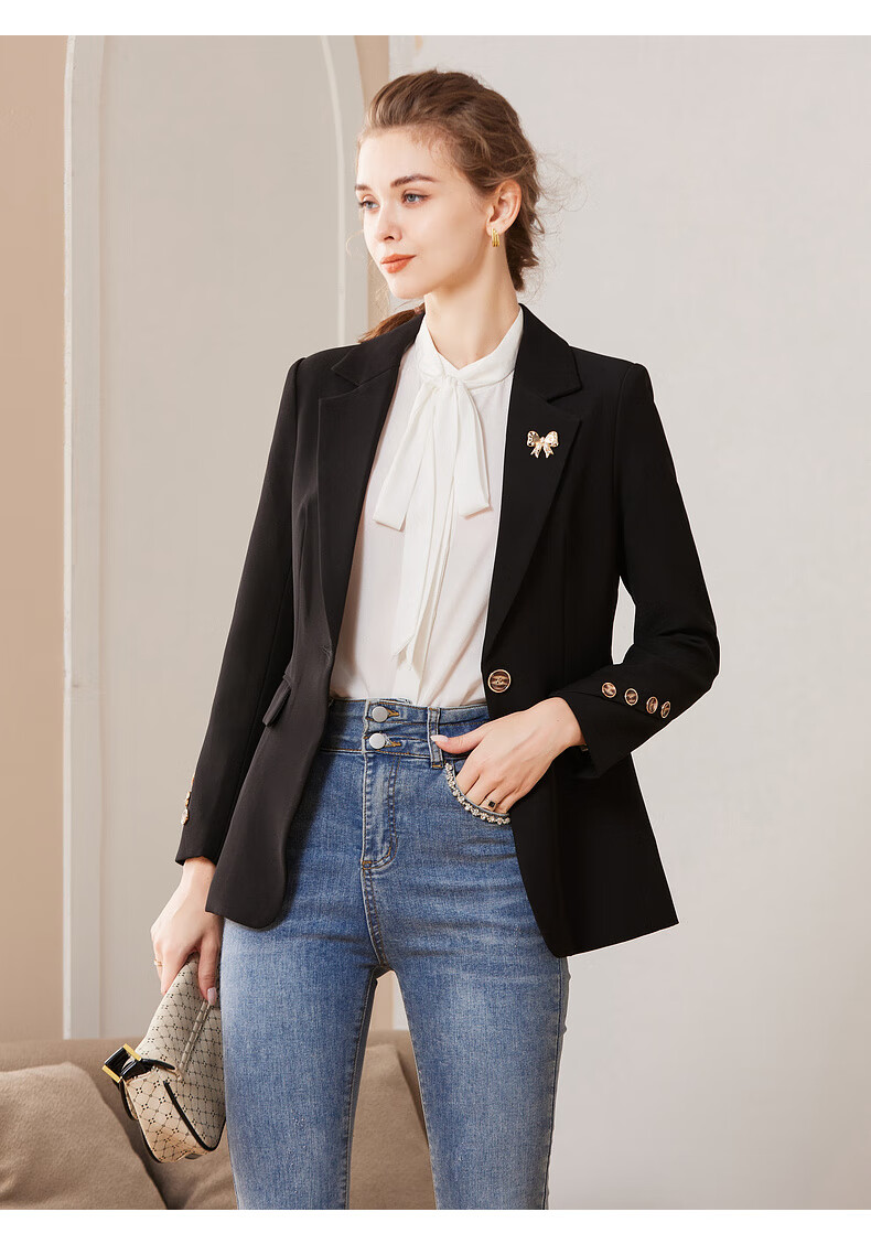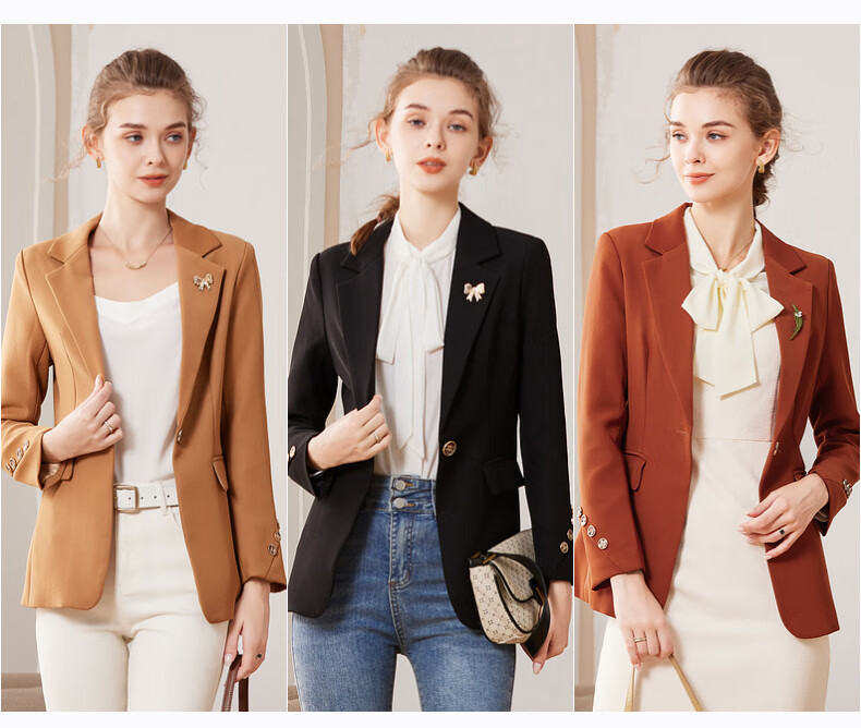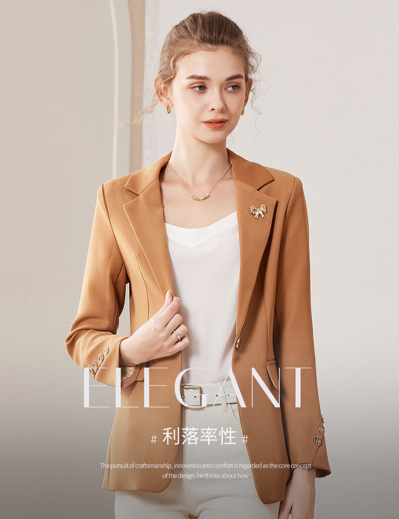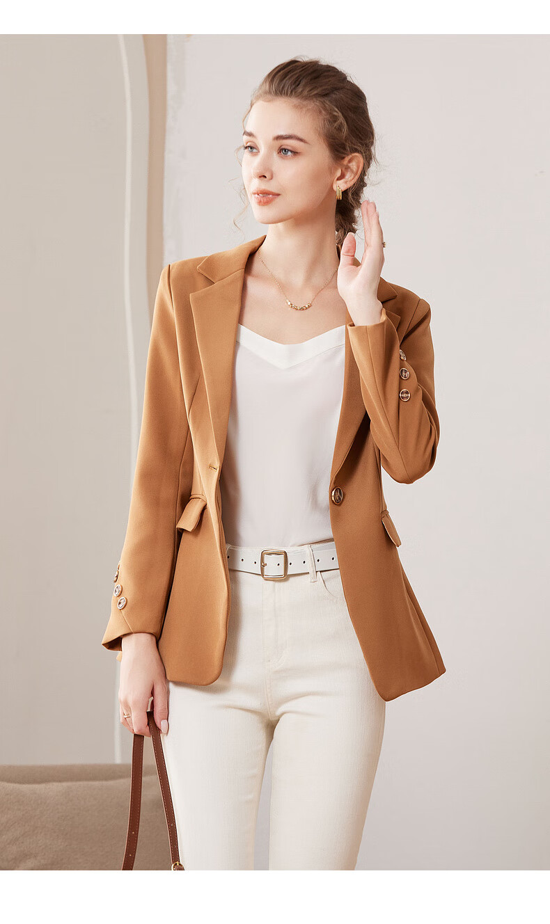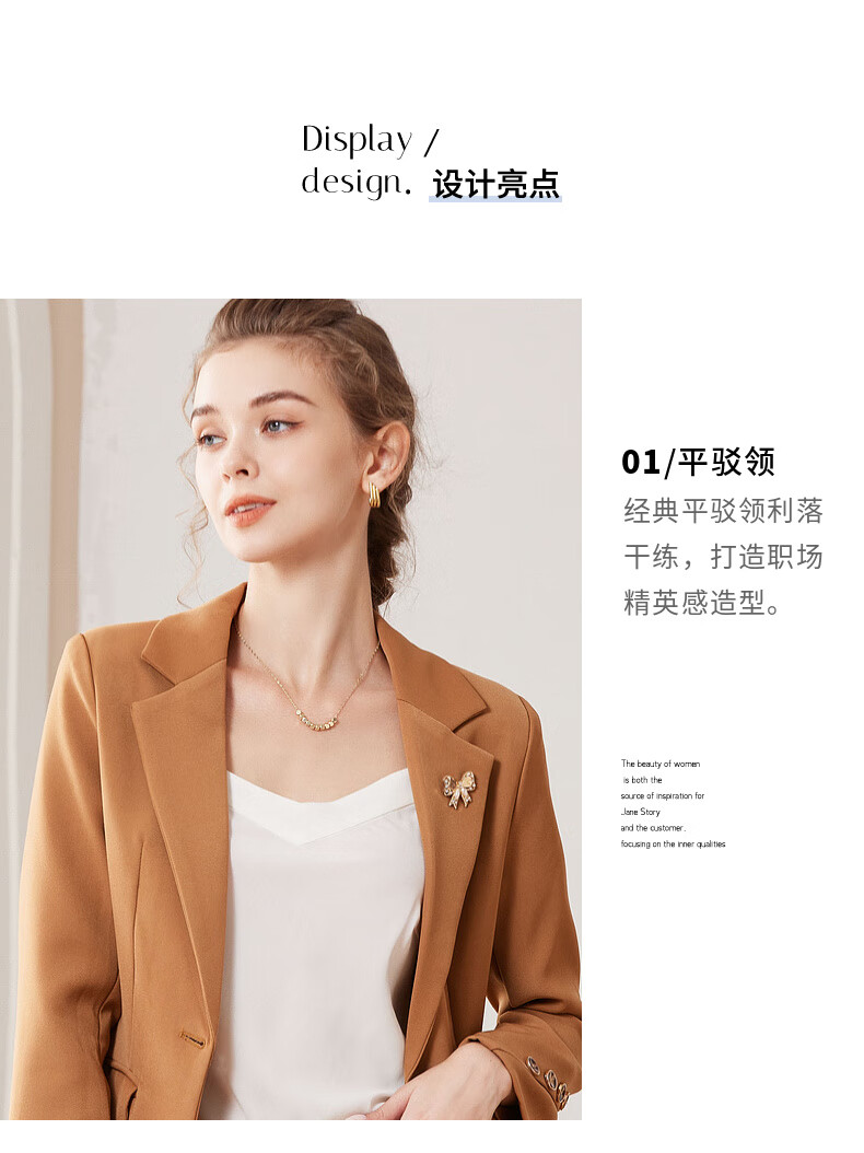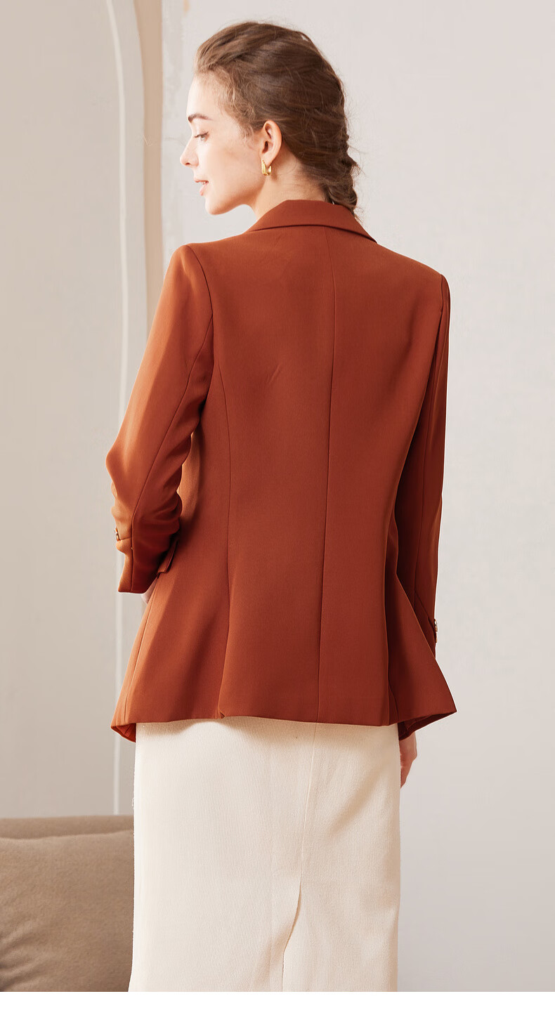 JANE STORY Classic Story Blazer Women's 2025 New Spring and Autumn Professional Wear Commuting High-end Suit Formal Top Caramel Color M
