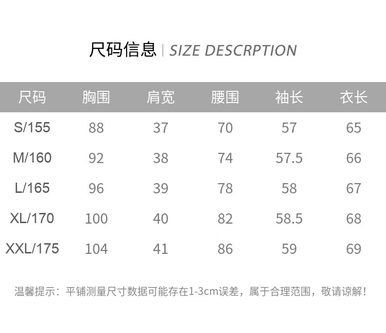 China (cm) 160-165/84-86 165-170 / 88-90 167-172 / 92-96 168-173 / 98-102 170-176 / 106-110