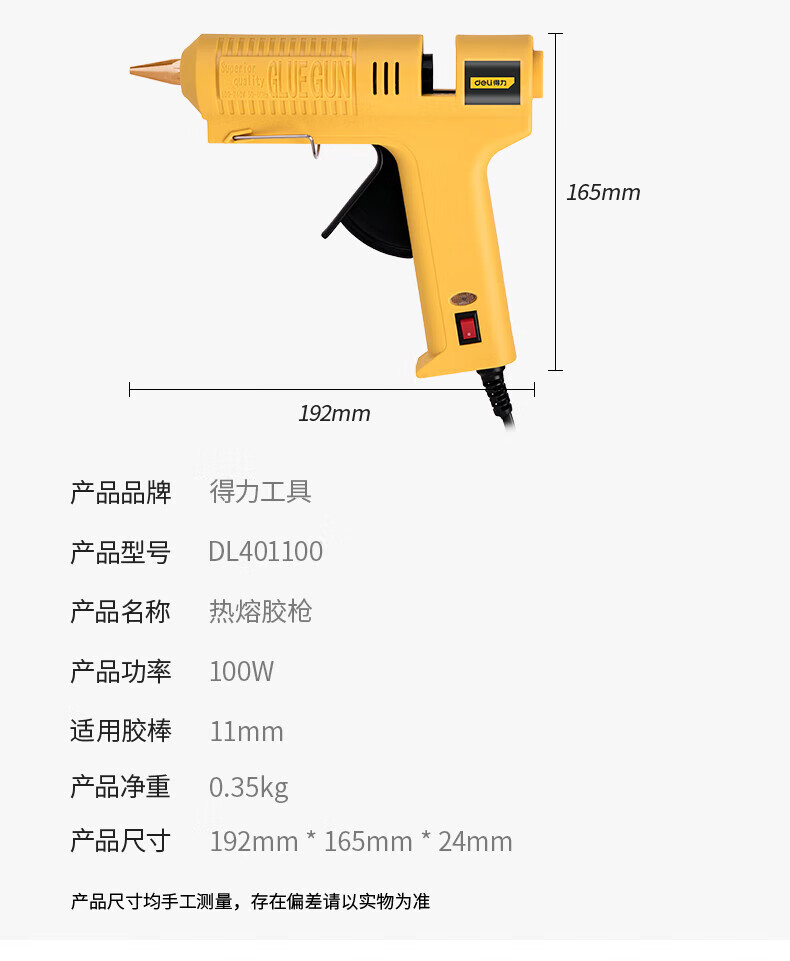 Deli hot melt glue gun professional industrial grade high power 100W hot glue gun home handmade glue gun hot melt gun DL401100 glue gun + 10 11mm glue sticks