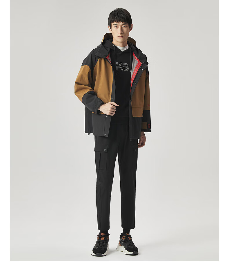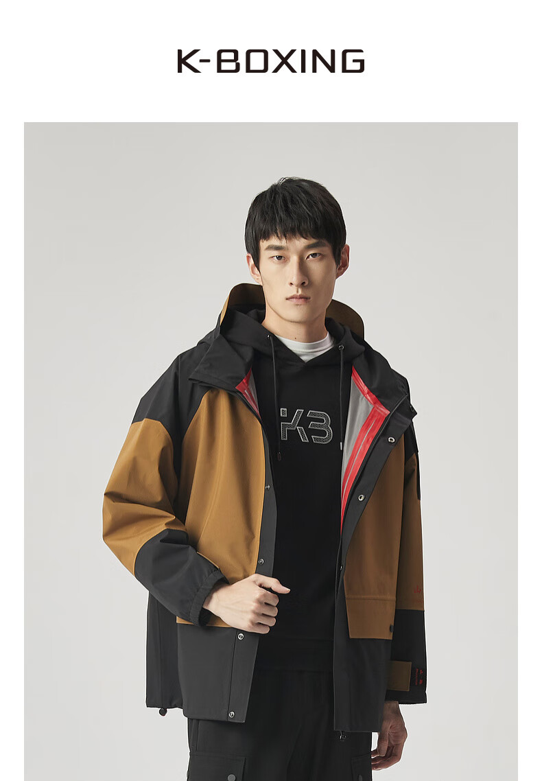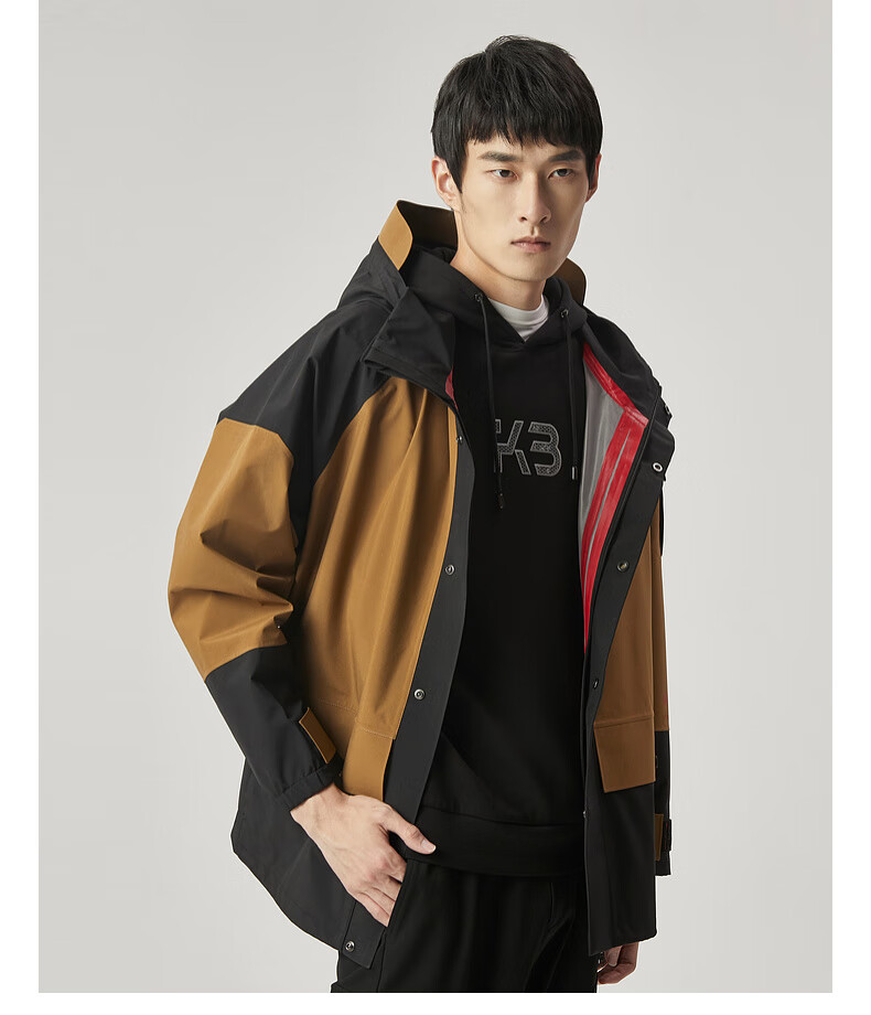 Jinba men's casual hooded color matching simple loose spring and autumn windbreaker for men | CFHG3305 light brown L