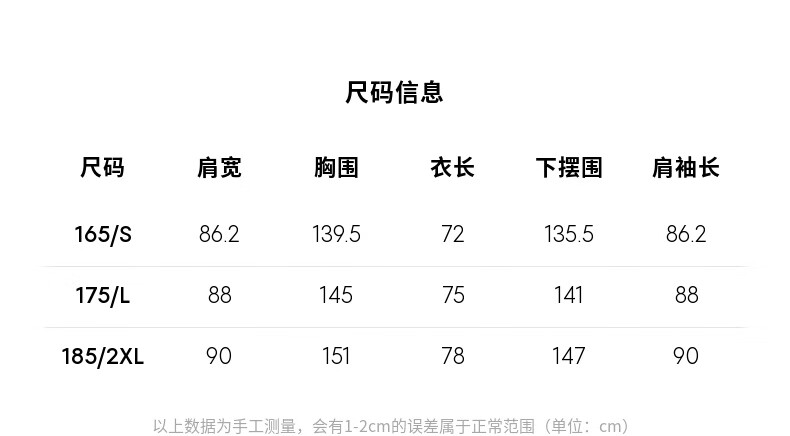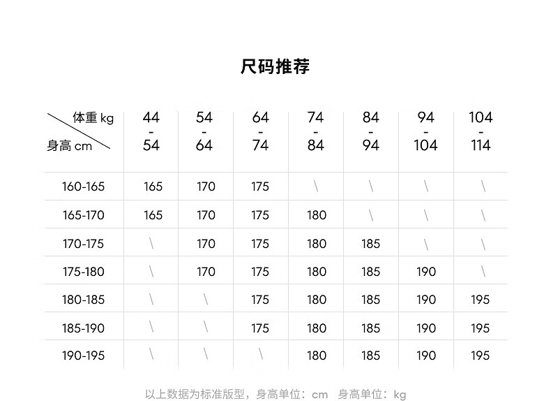 China (cm) 165 / 88-90 170 / 96-98 175 / 108-110 180 / 118-122 185 / 126-130