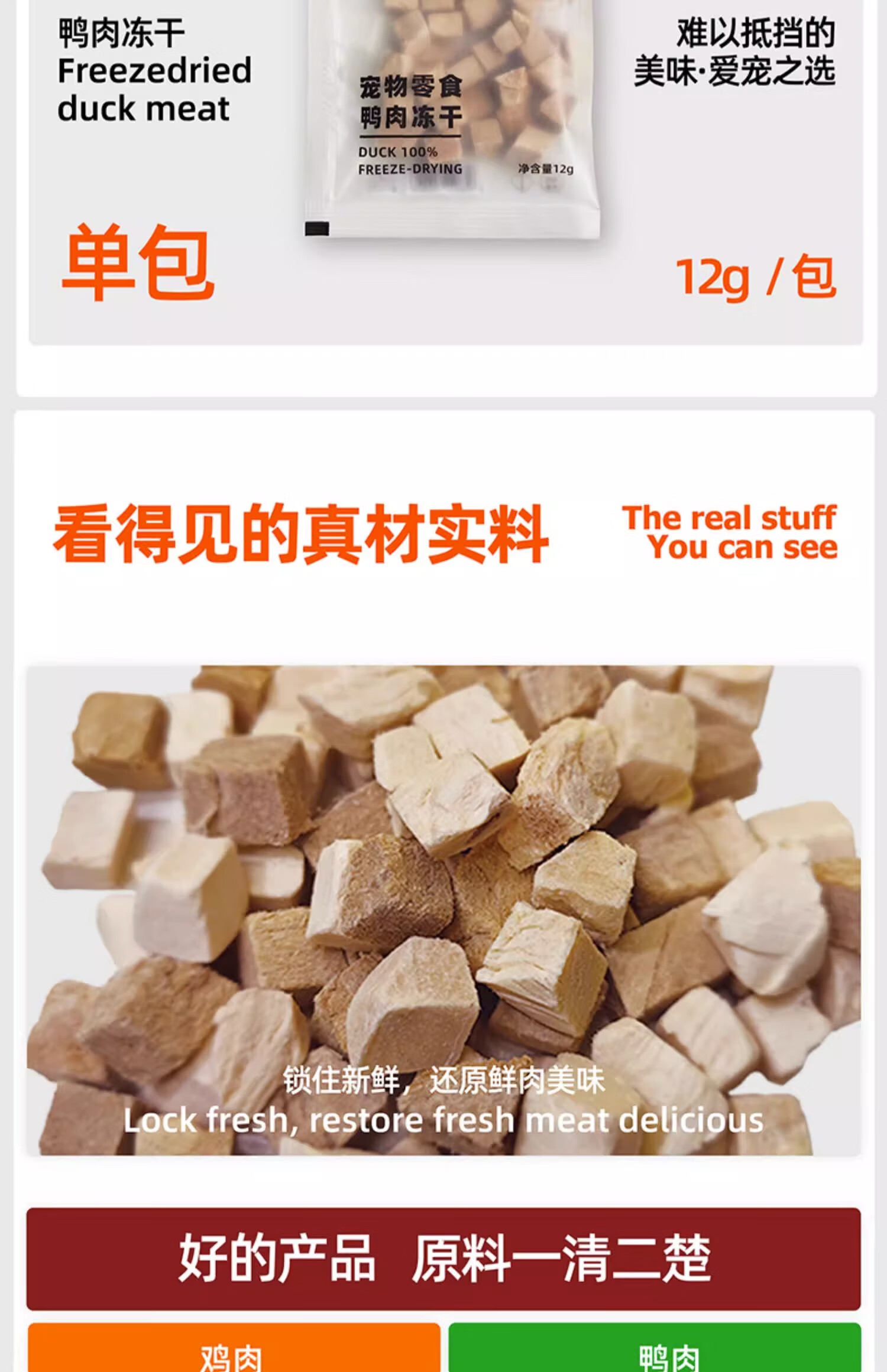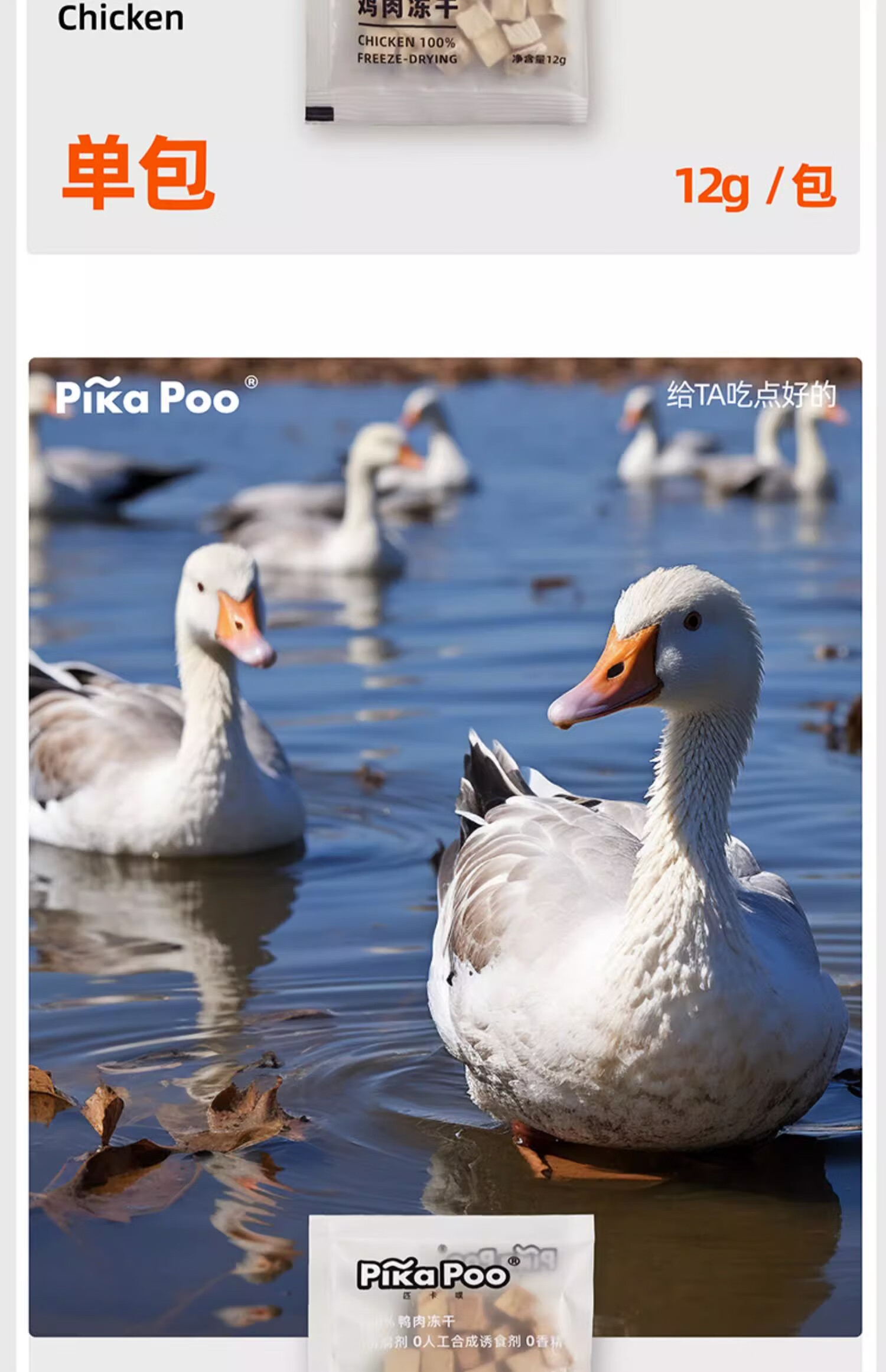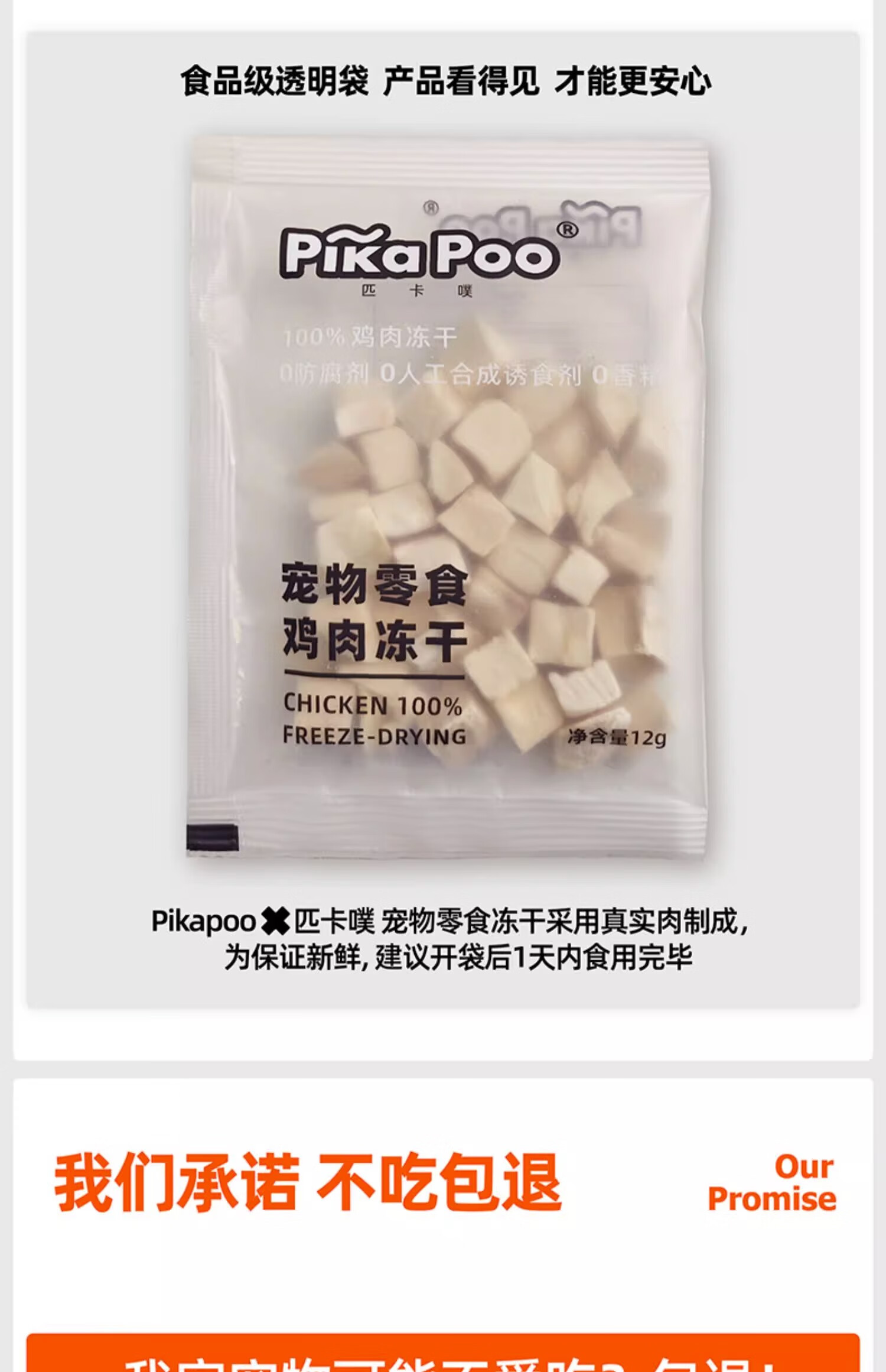 PikaPoo Freeze-dried Snacks for Kittens and Dogs Nutritional Pet Chicken Freeze-dried Duck Meat Freeze-dried 12g*1 Pack - Valid until March 25
