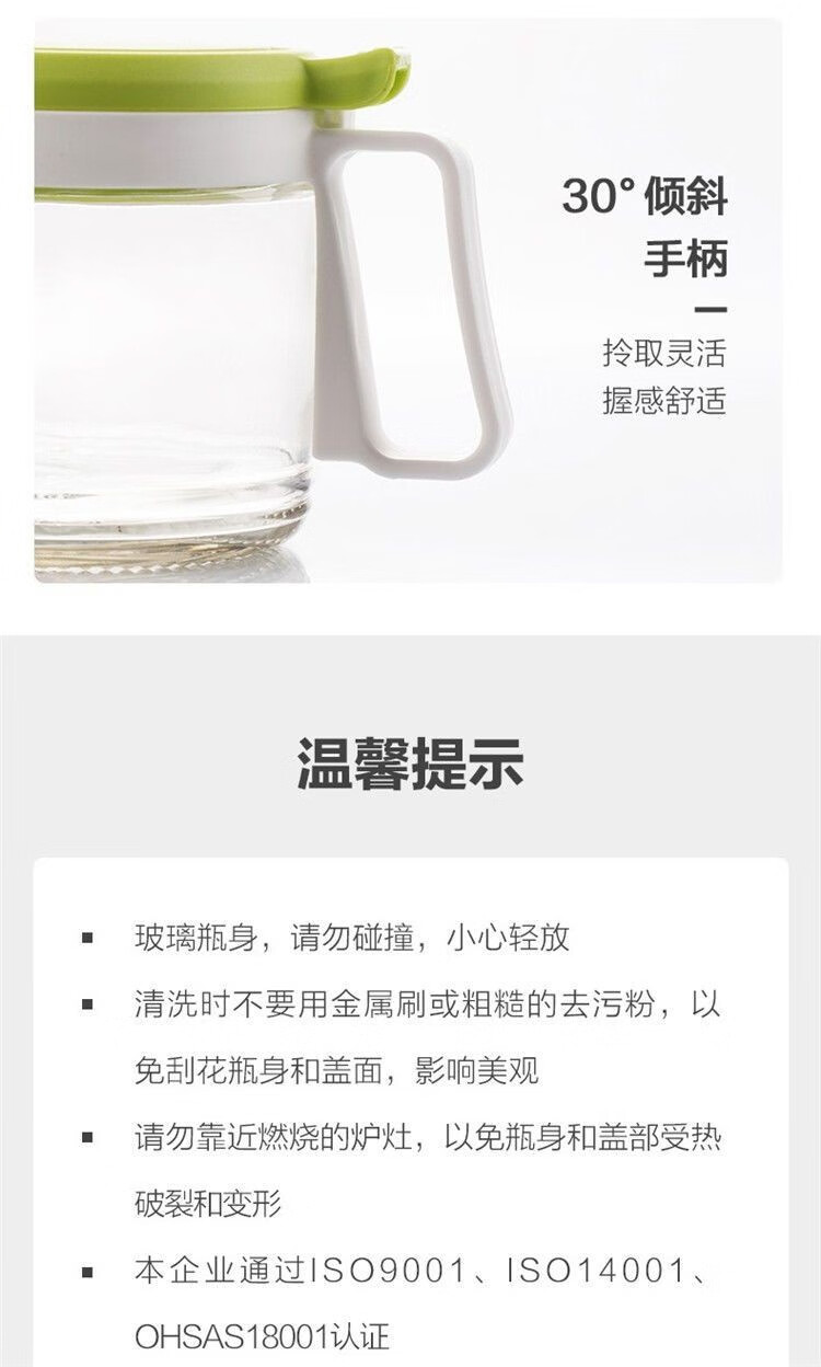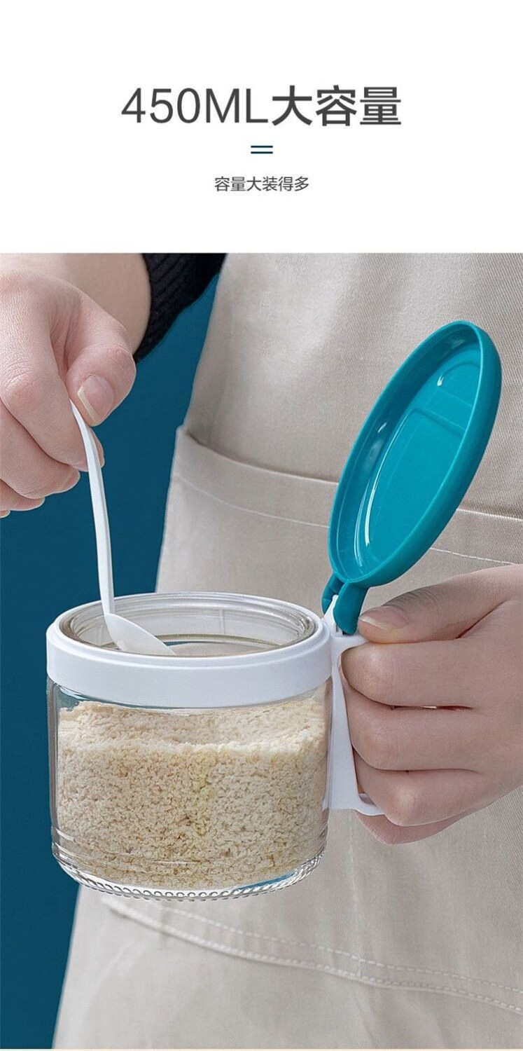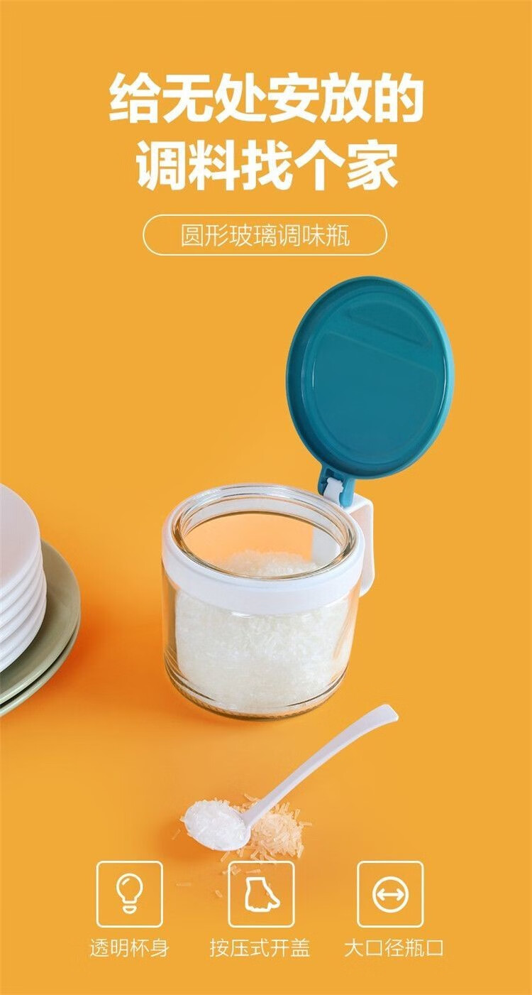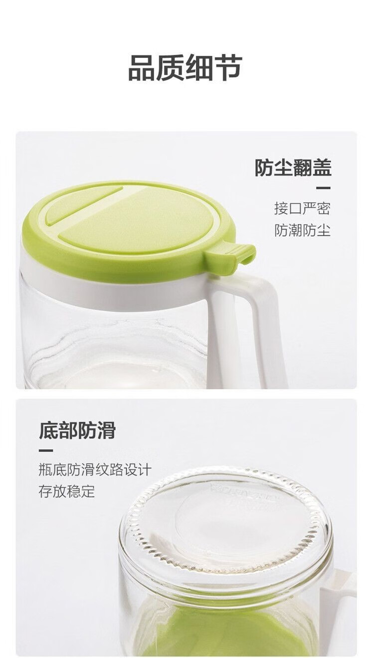 Camellia camellia seasoning jar seasoning bottle jar kitchen household sugar salt shaker glass round seasoning bottle seasoning jar 450ML round green 1 piece