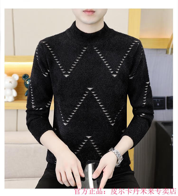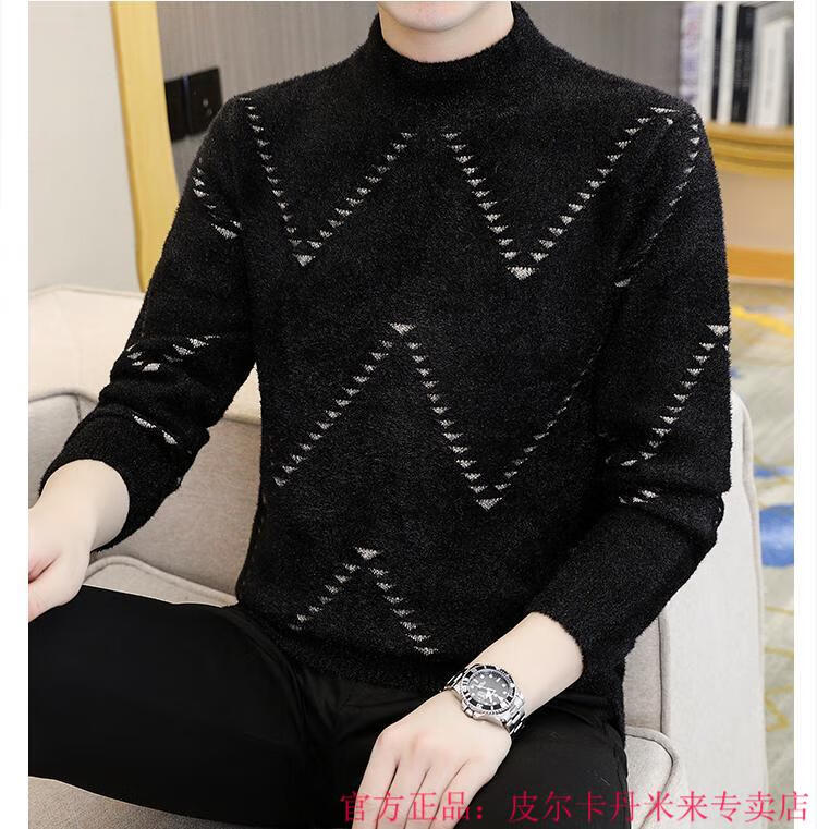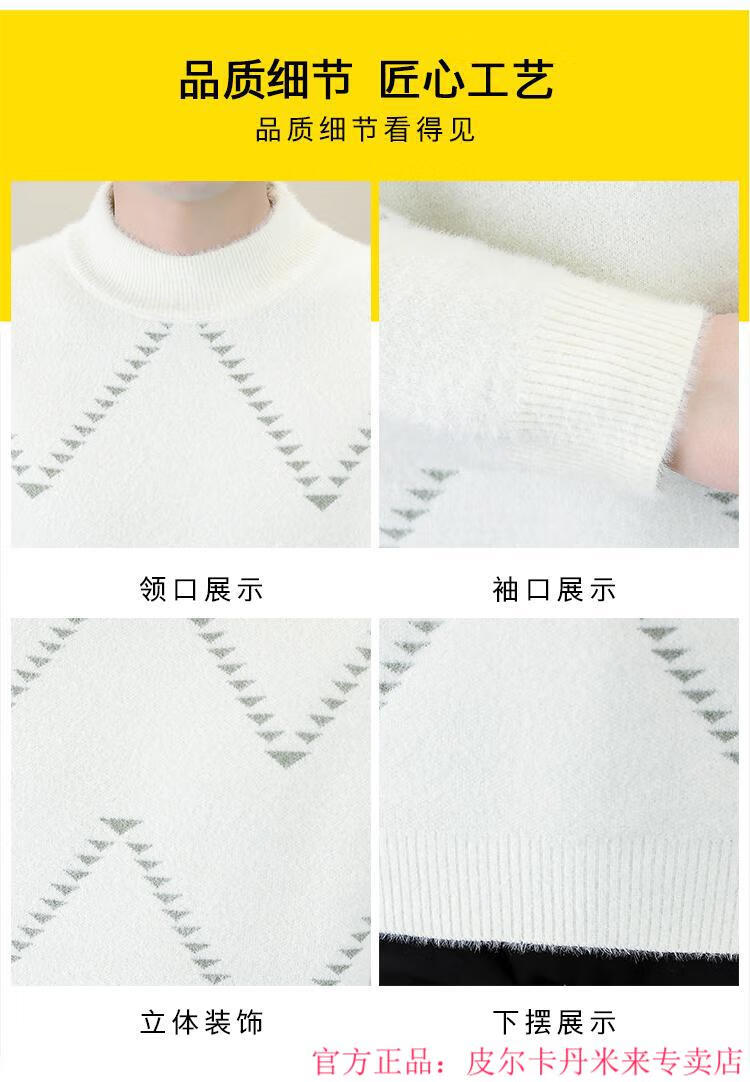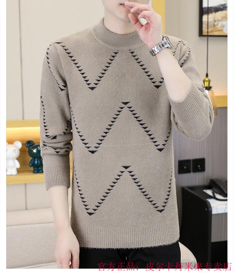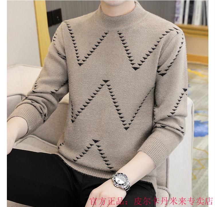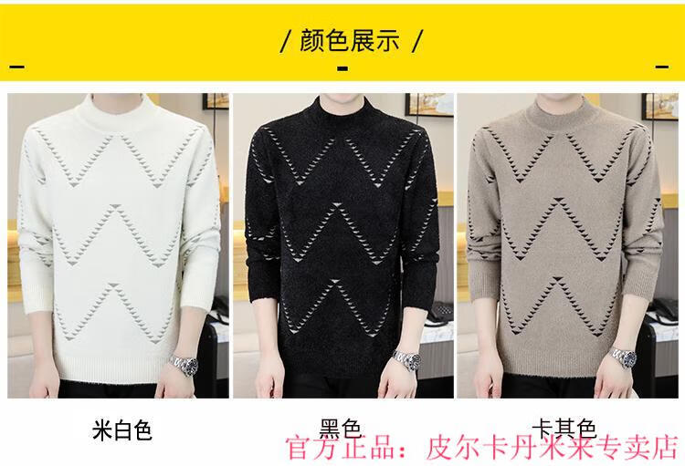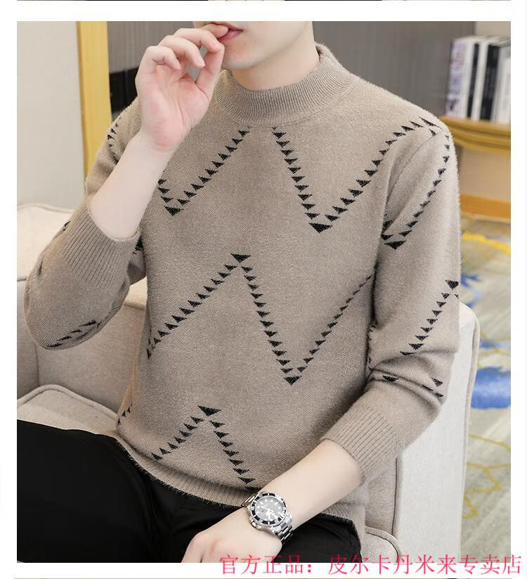 Pierre Cardin Mink Velvet Half Turtleneck Sweater Men's Autumn and Winter Thickened Knitted Bottoming Shirt Trendy High-end Inner Cardigan Khaki M 95-115Jin Jin is equal to 0.5 kg