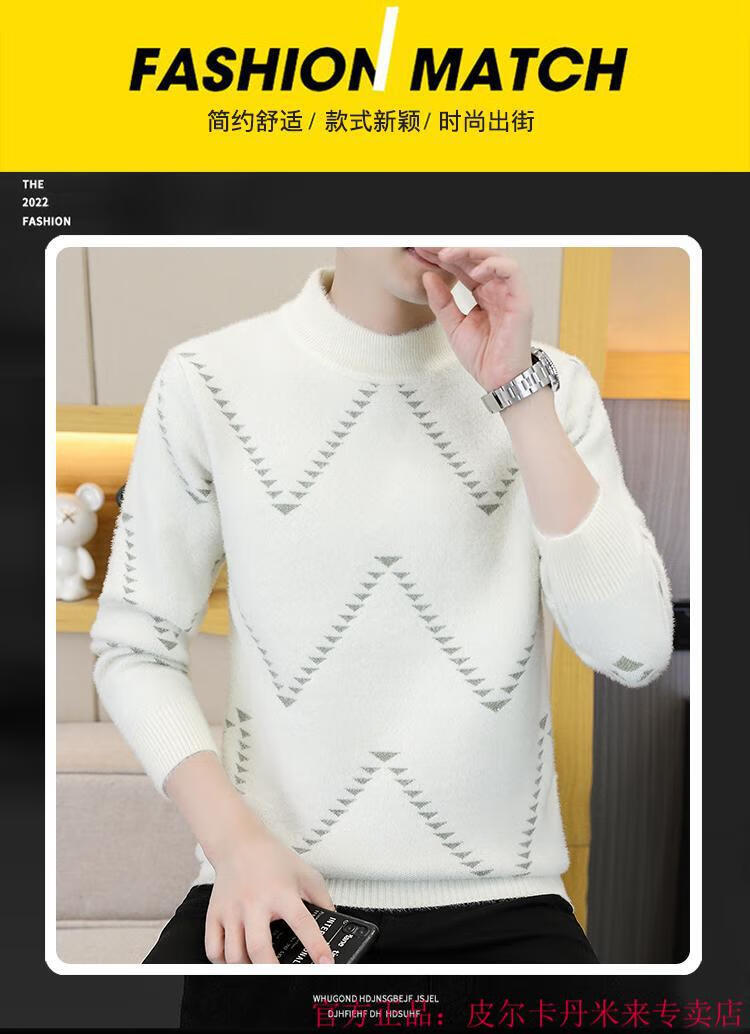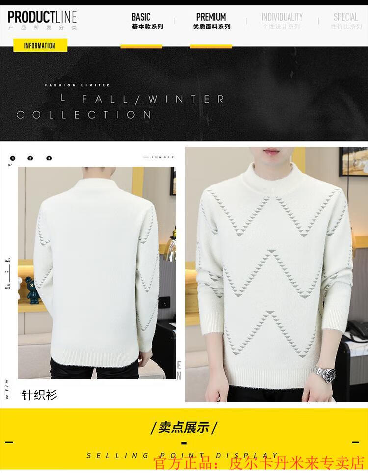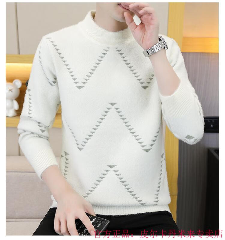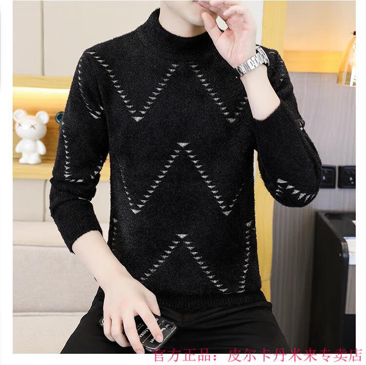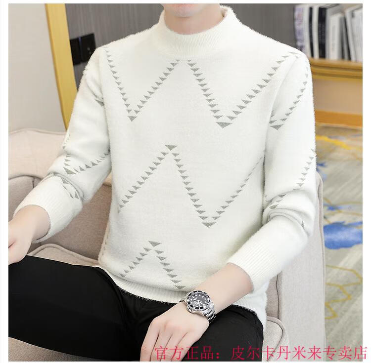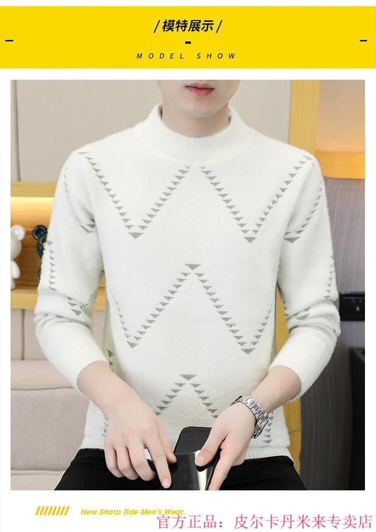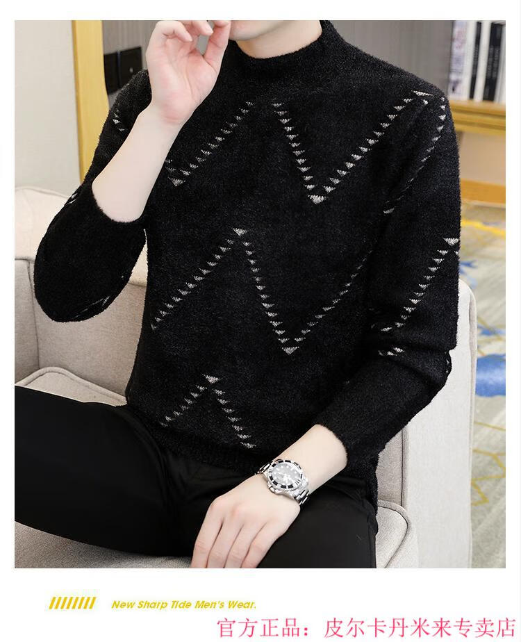 Pierre Cardin Mink Velvet Half Turtleneck Sweater Men's Autumn and Winter Thickened Knitted Bottoming Shirt Trendy High-end Inner Cardigan Khaki M 95-115Jin Jin is equal to 0.5 kg