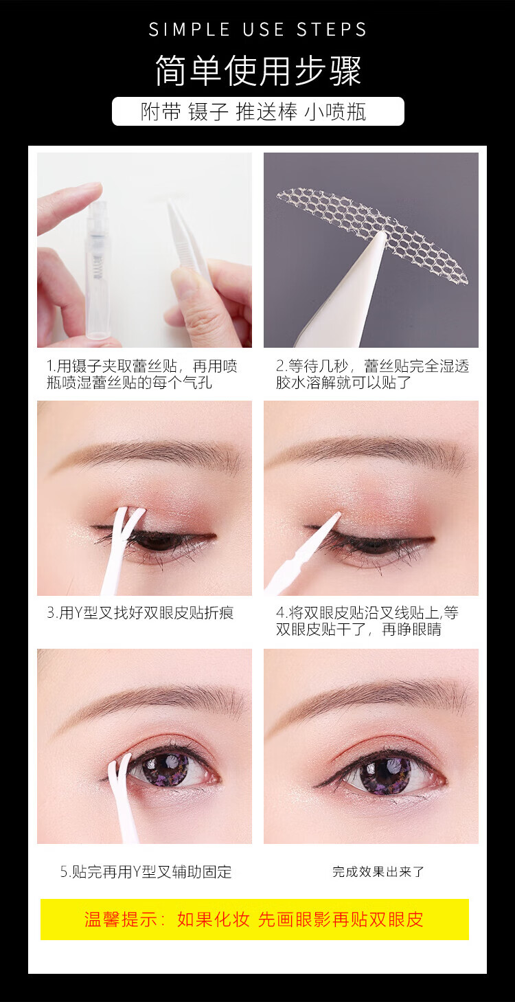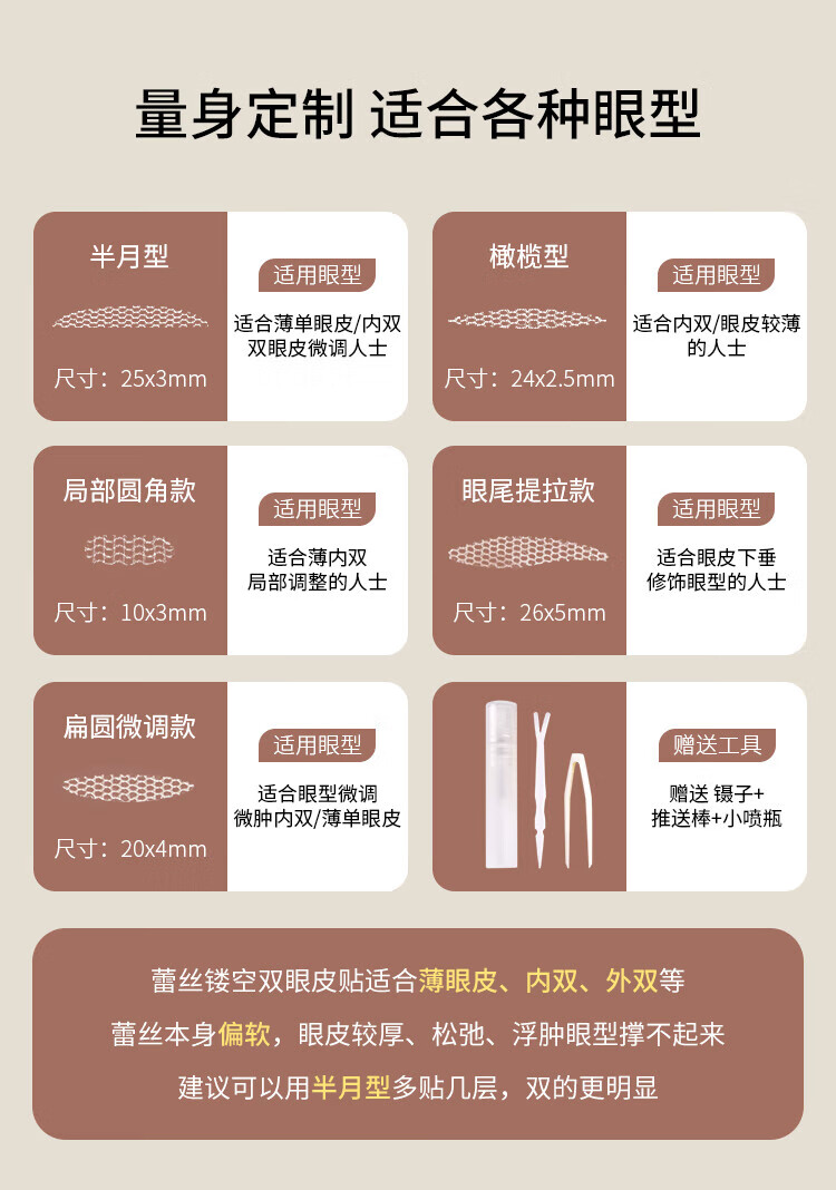 Beauty Skin Lace Hollow Double Eyelid Sticker Partial Double Eyelid Sticker Beauty Eye Sticker Glue-free Invisible Spray for Eyes with Edema Lace Hollow-Half-Moon Type 960 Stickers