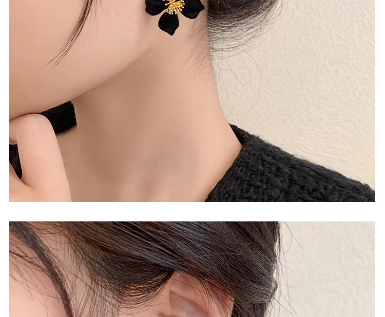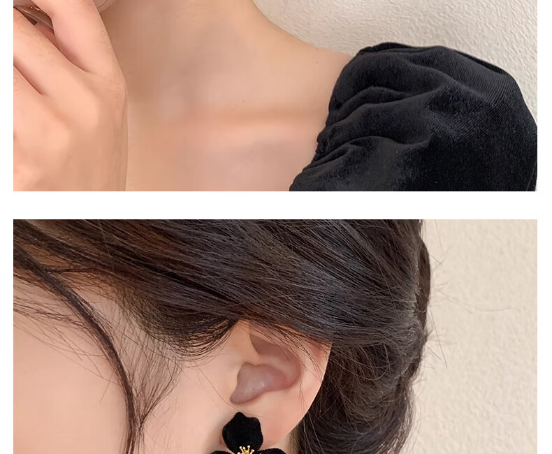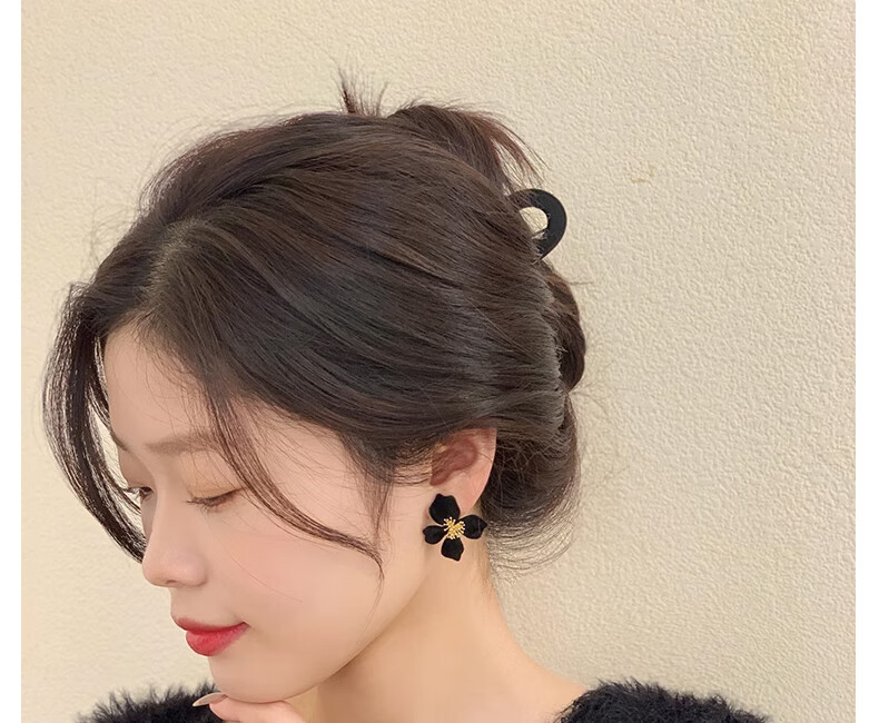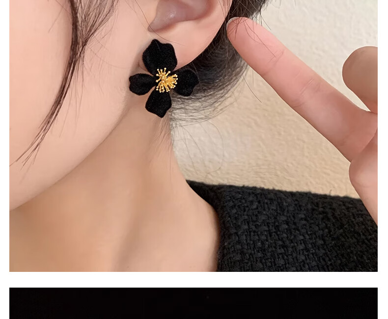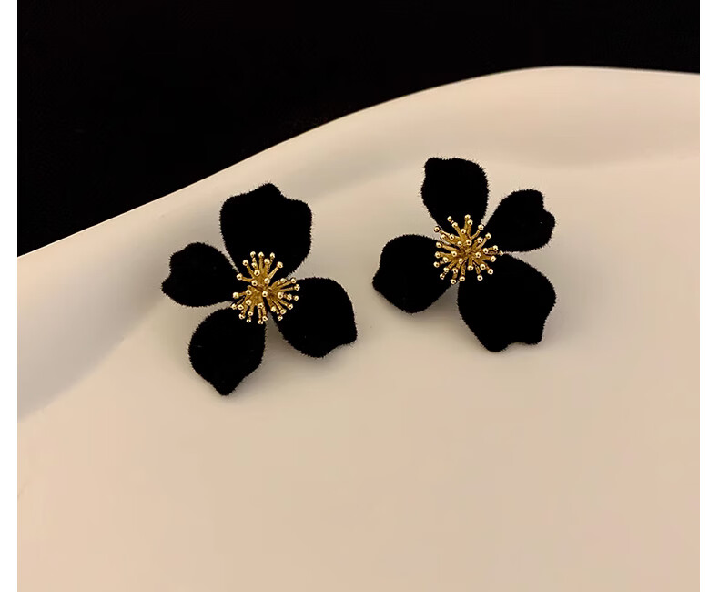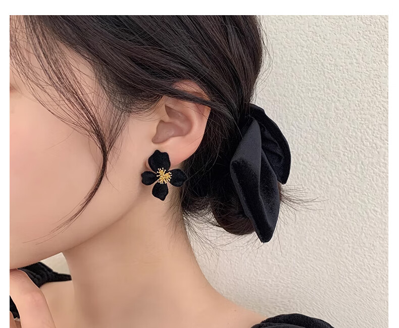 Idel niche design French light luxury high-end temperament black flower earrings women's unique earrings 2025 new earrings A4X105 black flower E3176