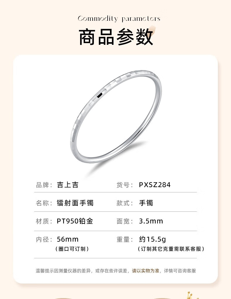 GsunG platinum bracelet women's model PT950 laser surface bracelet new shiny platinum women's bracelet round closed mouth priced by gram contact before bidding