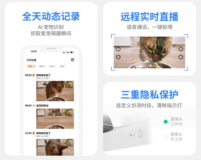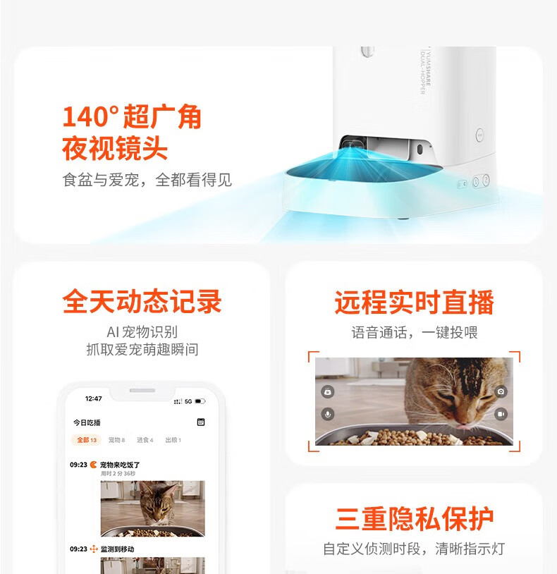 Xiaopei pet intelligent timed and quantitative visual feeder, fully automatic feeder, remote night vision monitoring for cats and dogs, Gemini feeder (visual version)