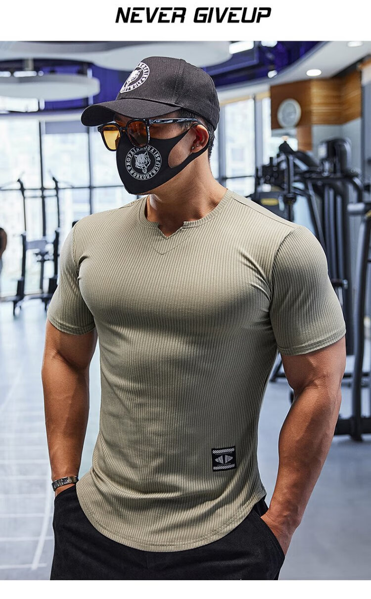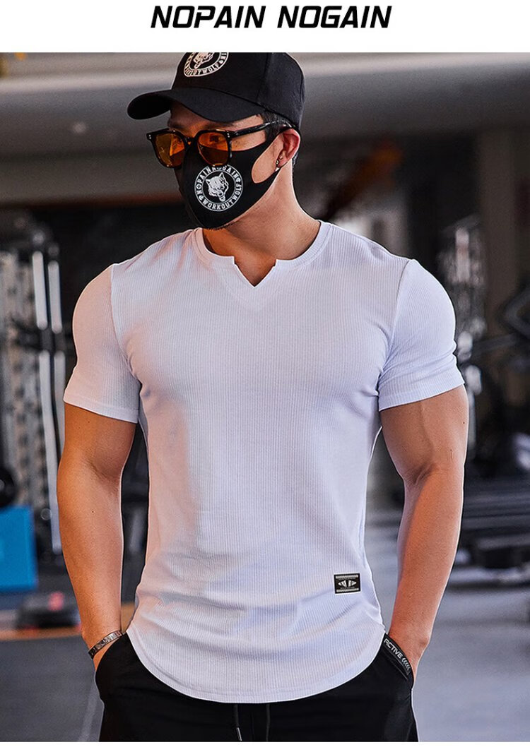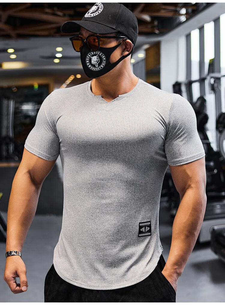 Lutielang tight fitness clothes men's sports short-sleeved round neck quick-drying short-sleeved T-shirt coaching clothes men's muscle training elastic black XXL