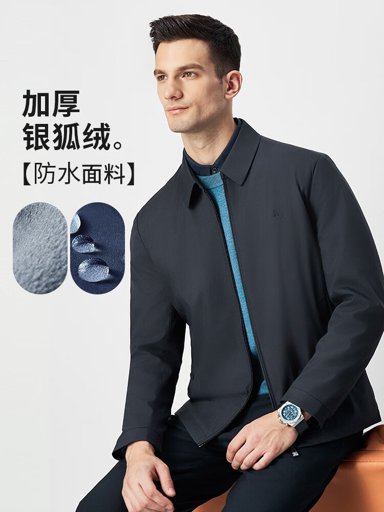 Shanshan velvet thickened jacket men's spring and autumn casual warm top middle-aged dad lapel executive jacket men's dark blue (recommended to take one size larger) L 175/92A