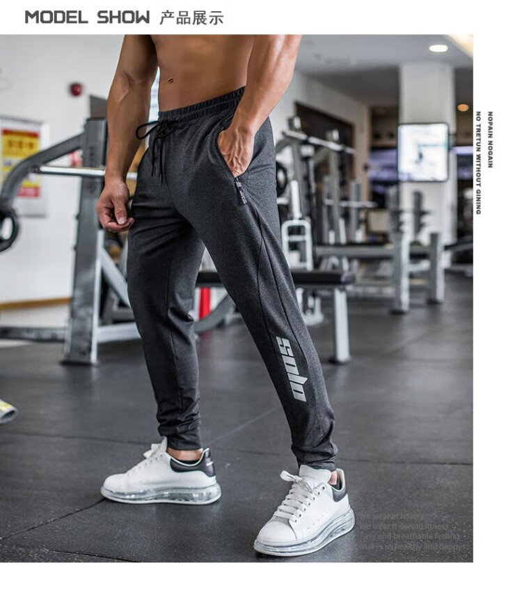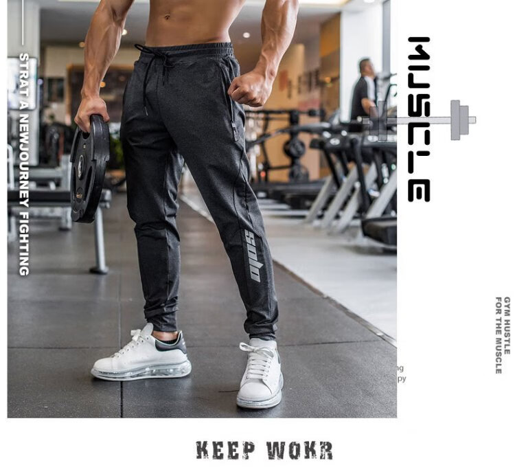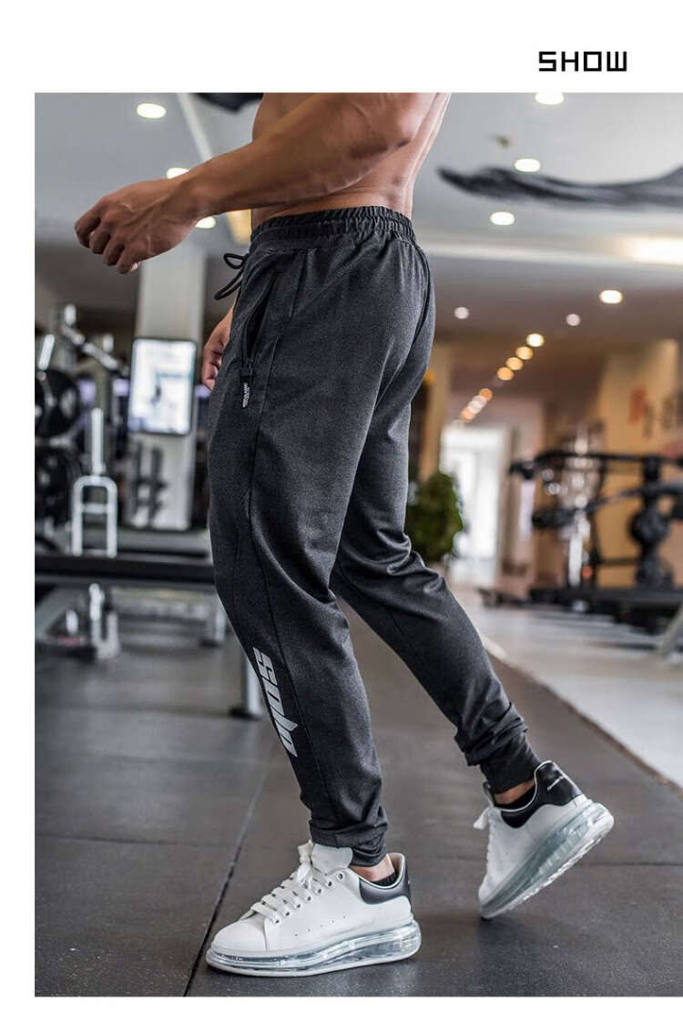 Lutielang Sports Pants Men's Fitness Stretch Quick-Drying Physical Training Running Squat Leg Pants Dark Gray L