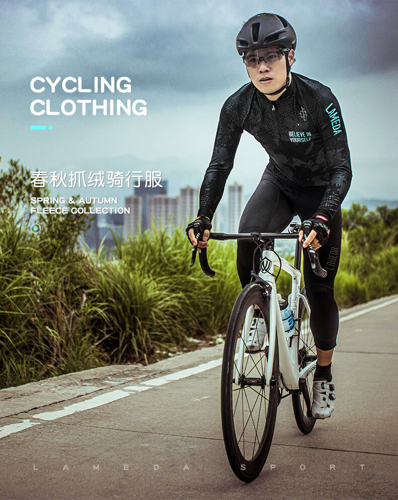 Lampada Spring and Autumn Cycling Clothing Fleece Long Sleeve Road Cycling Men's Warm Long Top Windproof Suit Charm-Fleece Long Sleeve (Front Windproof Back Fleece) XL