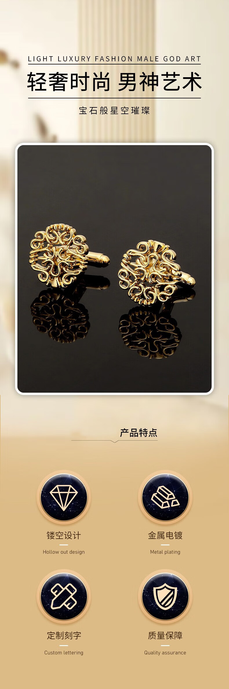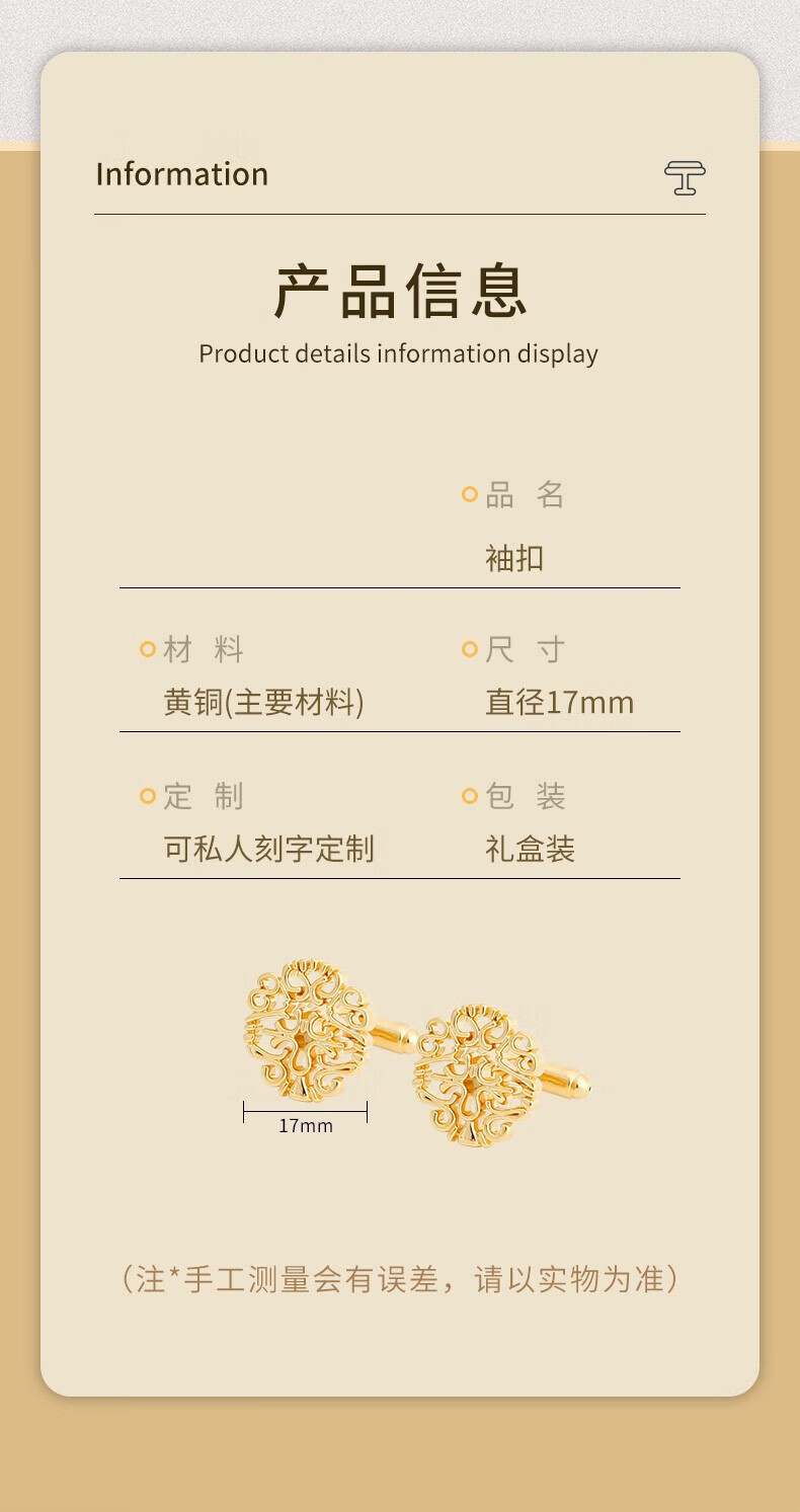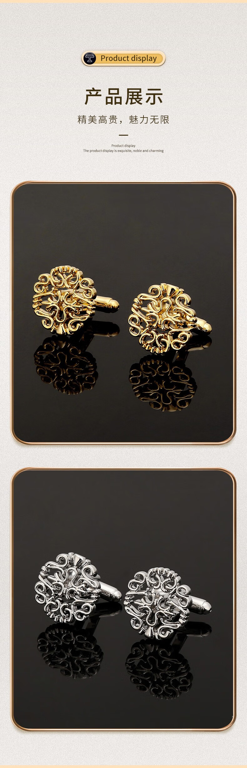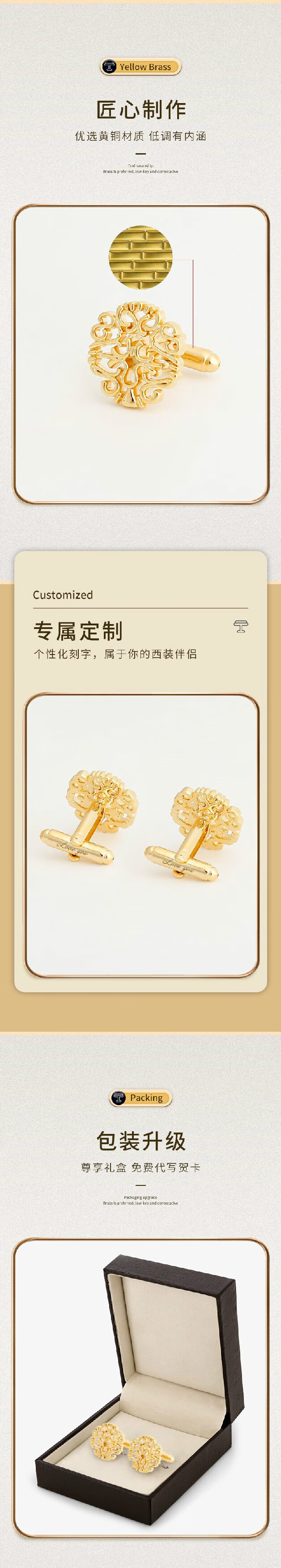 Apatia French shirt cuff buttons for men, gold business cuff buttons for men and women, simple shirt cuff buttons, gift box, gold hollow pattern