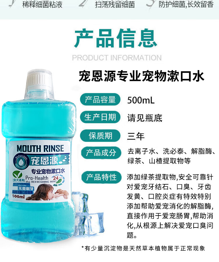 OIMG Chongenyuan Pet Mouthwash for Deodorizing and Drinking to Remove Tartar and Stones Teddy Poodle Golden Retriever for All Dog Breeds Sky Blue 500ML Single Bottle