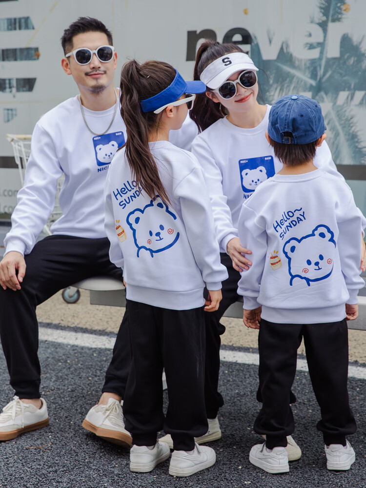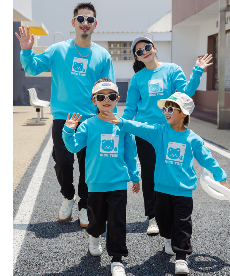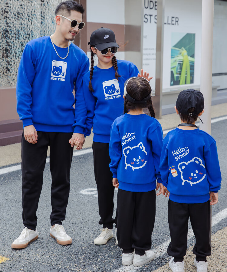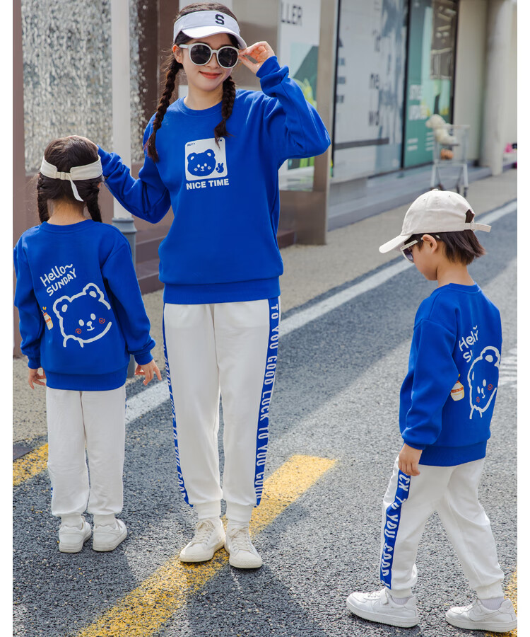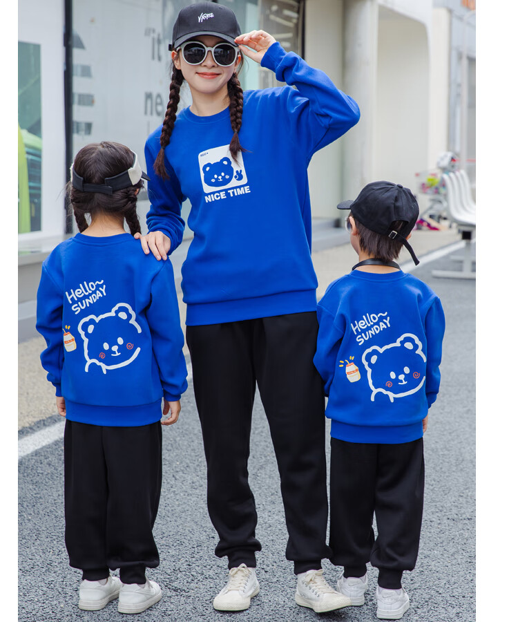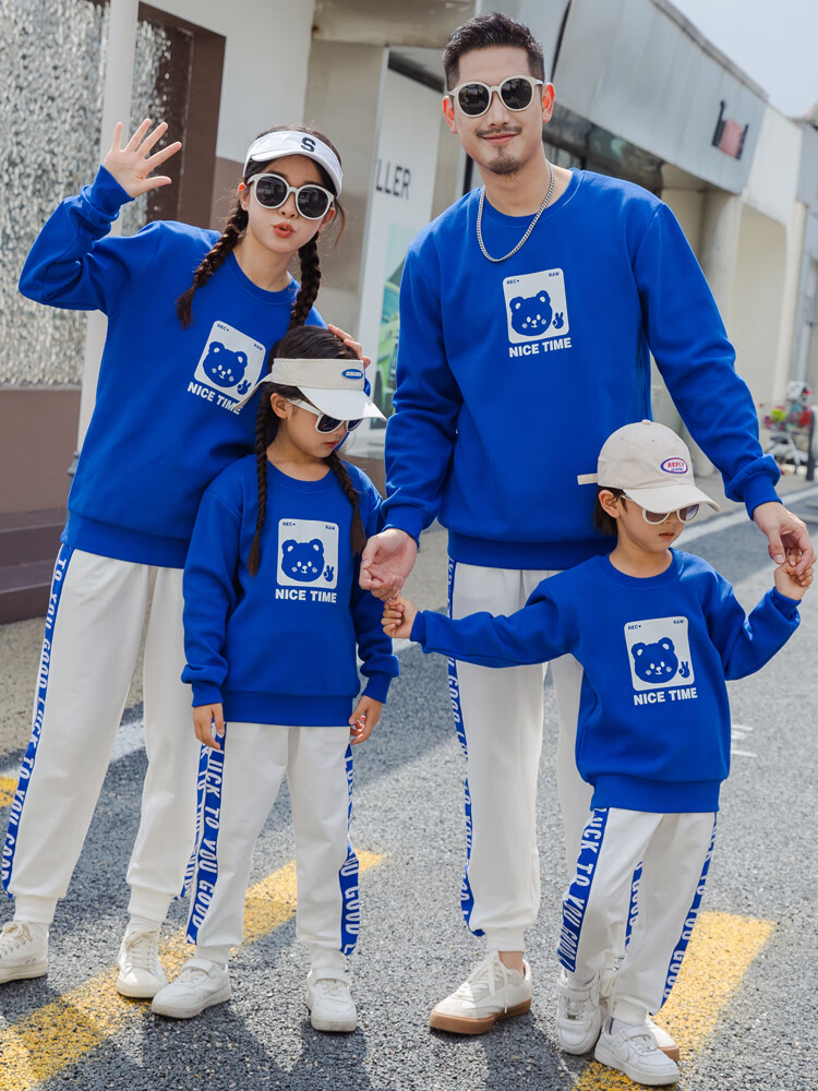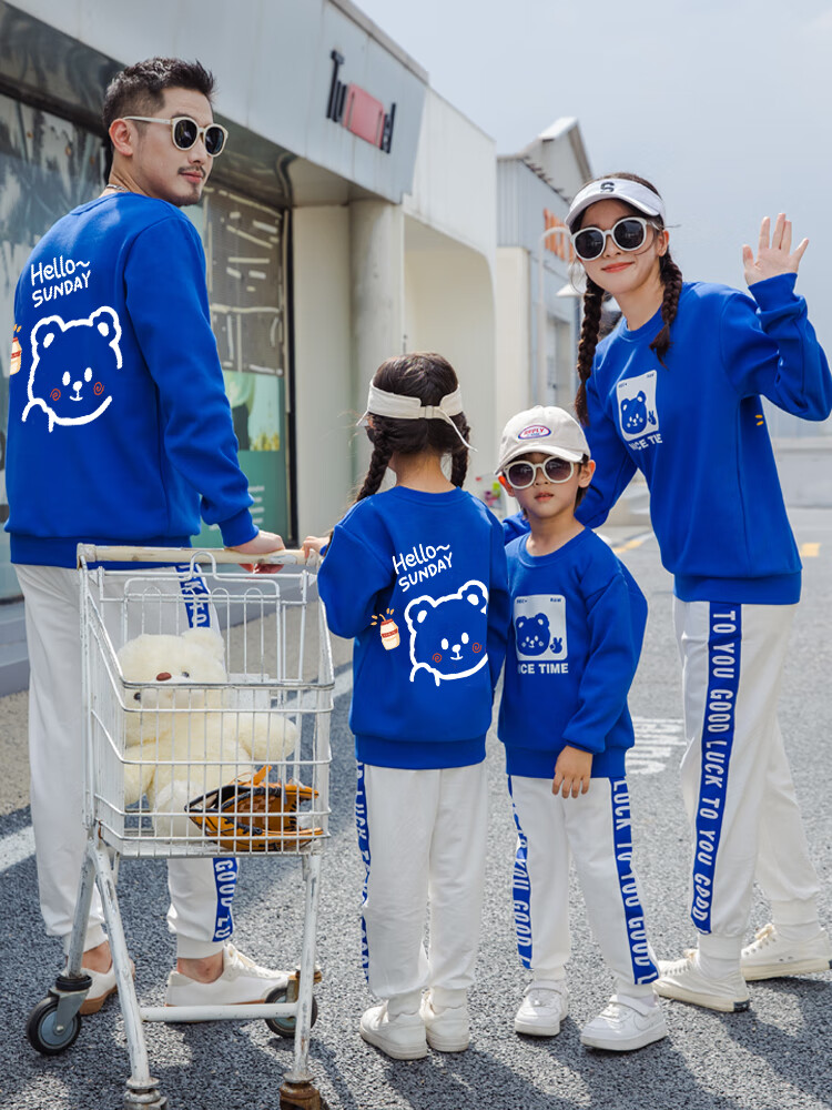 G.duck parent-child clothing autumn new trendy family of three and four suit long-sleeved cotton sweatshirt suit long-sleeved Sunday (Klein blue + black pants Mom XL