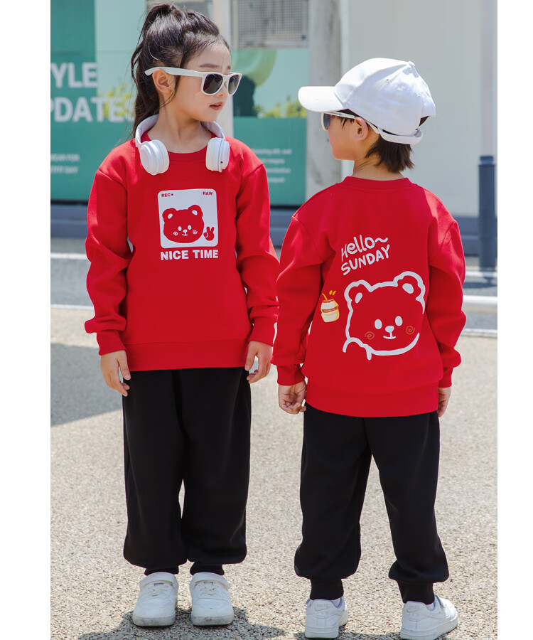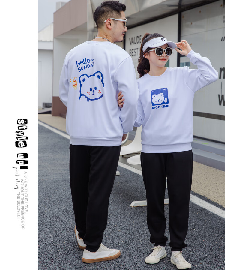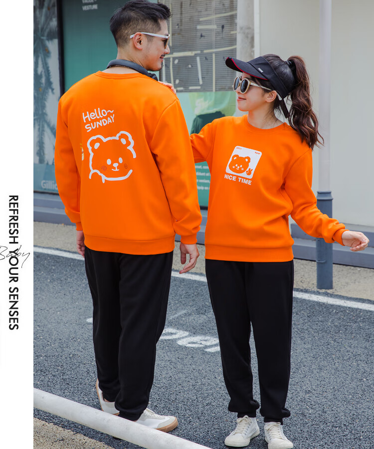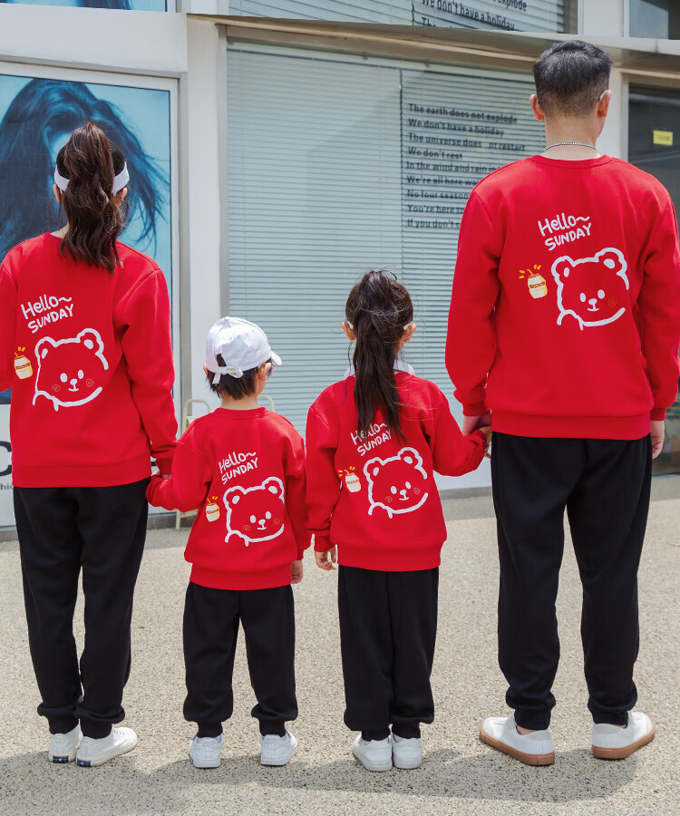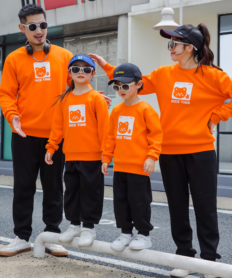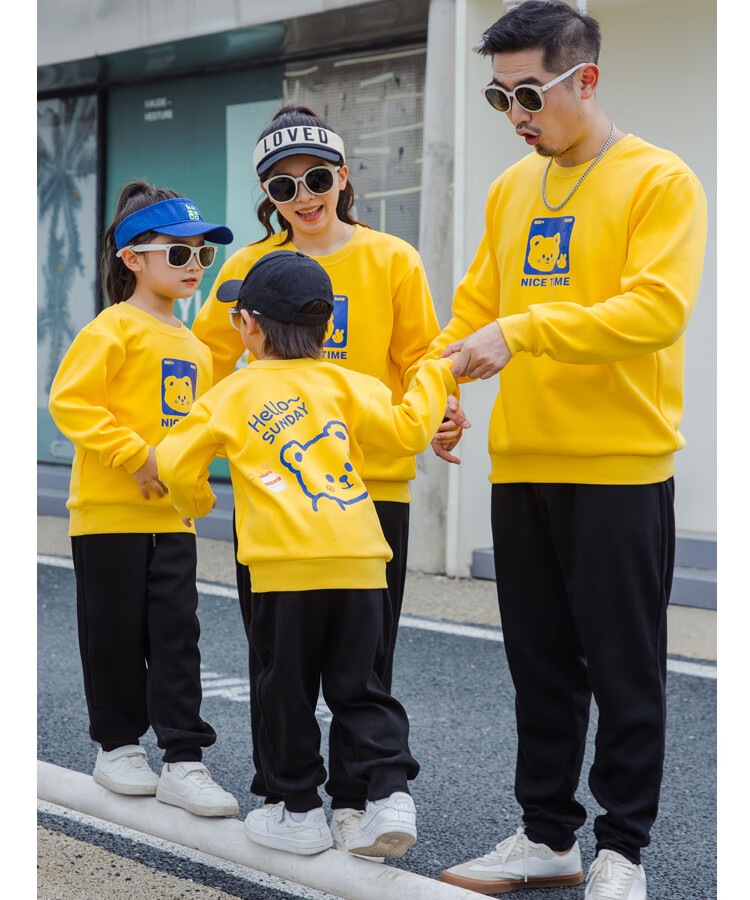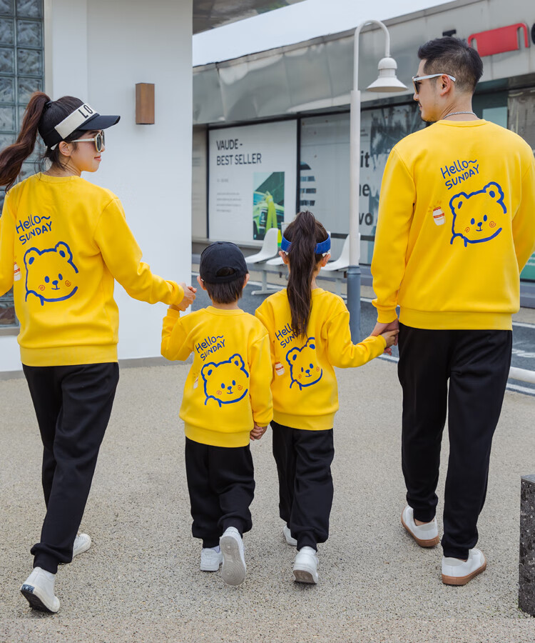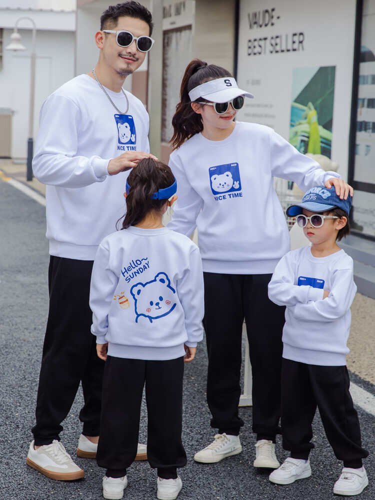 G.duck parent-child clothing autumn new trendy family of three and four suit long-sleeved cotton sweatshirt suit long-sleeved Sunday (Klein blue + black pants Mom XL