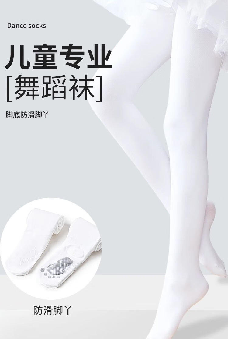 YEEHOO 2-pack girls' dance socks, children's stockings, students' white bottoming pantyhose, non-slip socks, not easy to snag, YEEHOO white, non-slip and high elastic soles, 2 pieces, one size fits all M (90-105cm)